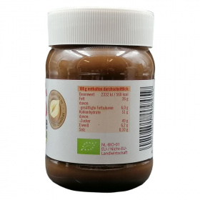 Összetevők: bio mogyoró, bio cukor, bio kakaóvaj, bio pálmaolaj, bio tejpor, bio vanília.