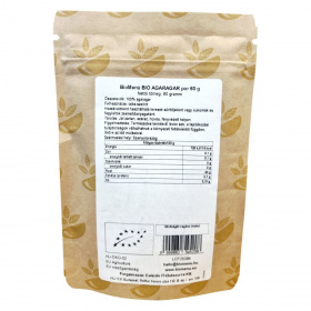 A BioMenü Agaragar por egy 100% tisztaságú, organikus, vegán és raw termék, amelyet levesek sűrítőjeként vagy cukorkák és fagylaltok zselésítőanyagaként használhatunk. Nettó tömege 60 gramm.