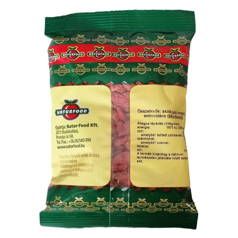 Összetevők: aszalt goji bogyó, antioxidáns (kén-dioxid)
