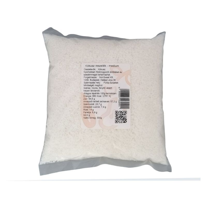 A közepes szemcséjű kókuszreszelék természetes, aromás összetevő, amely sütemények és desszertek ízesítésére alkalmas.