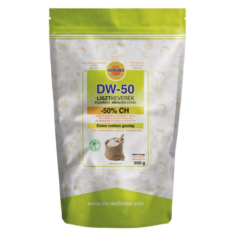 A Dia-Wellness lisztkeverék 50%-kal kevesebb szénhidrátot tartalmaz a hagyományos BL-55 búzaliszthez képest.