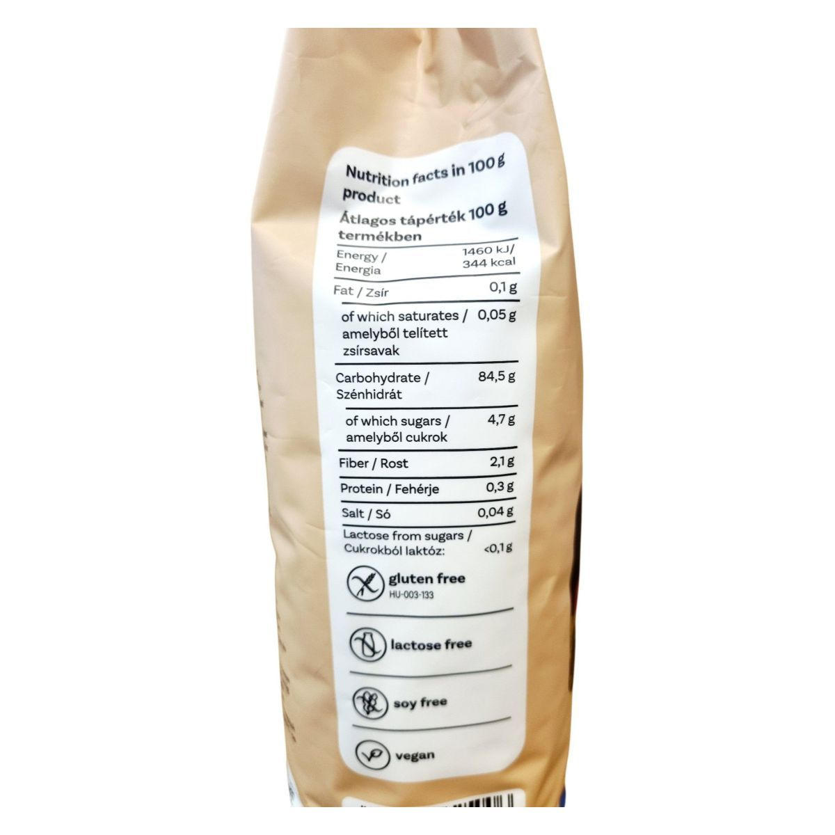 Szénhidrát: 84,5 g, ebből cukor: 4,7 g