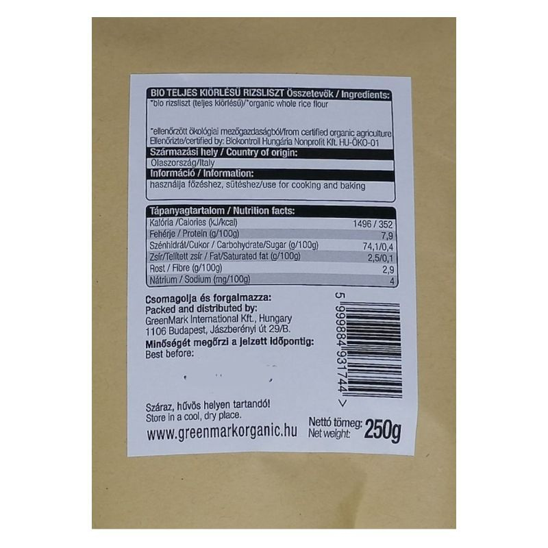 Összetevők: 100% teljes kiőrlésű rizsliszt.