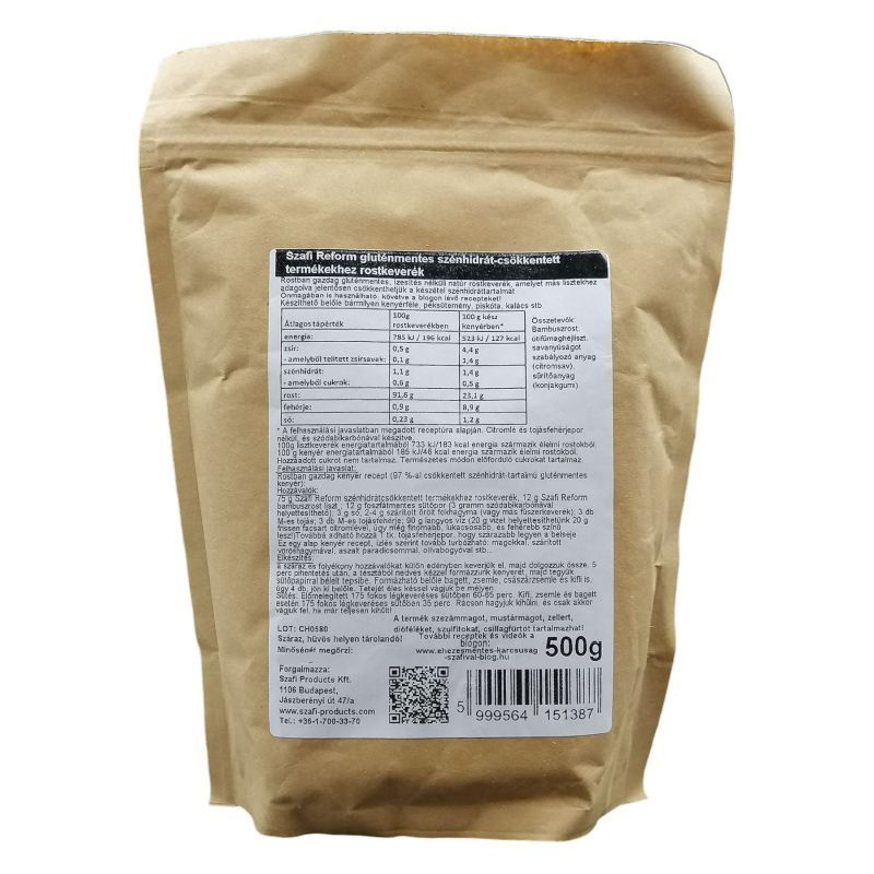 Rostban gazdag gluténmentes, ízesítés nélküli natúr rostkeverék, amelyet más lisztekhez adagolva jelentősen csökkenthetjük a készétel szénhidráttartalmát.