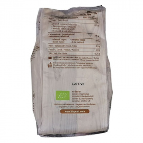 Összetevők: kukoricadara*, keményítő* (kukorica*, burgonya*), liszt* (rizs*, kukorica*, köles*), rizsszirup*, napraforgóolaj*, tengeri só, nádcukor*, útifűmaghéj*, emulgeálószer (napraforgólecitin), szárított élesztő, térfogatnövelő szerek (nátrium-hidrogén-karbonát, ammónium-hidrogén-karbonát), savanyúságot szabályozó anyag (nátrium-hidroxid). *Ellenőrzött ökológiai gazdálkodásból származó alkotó.