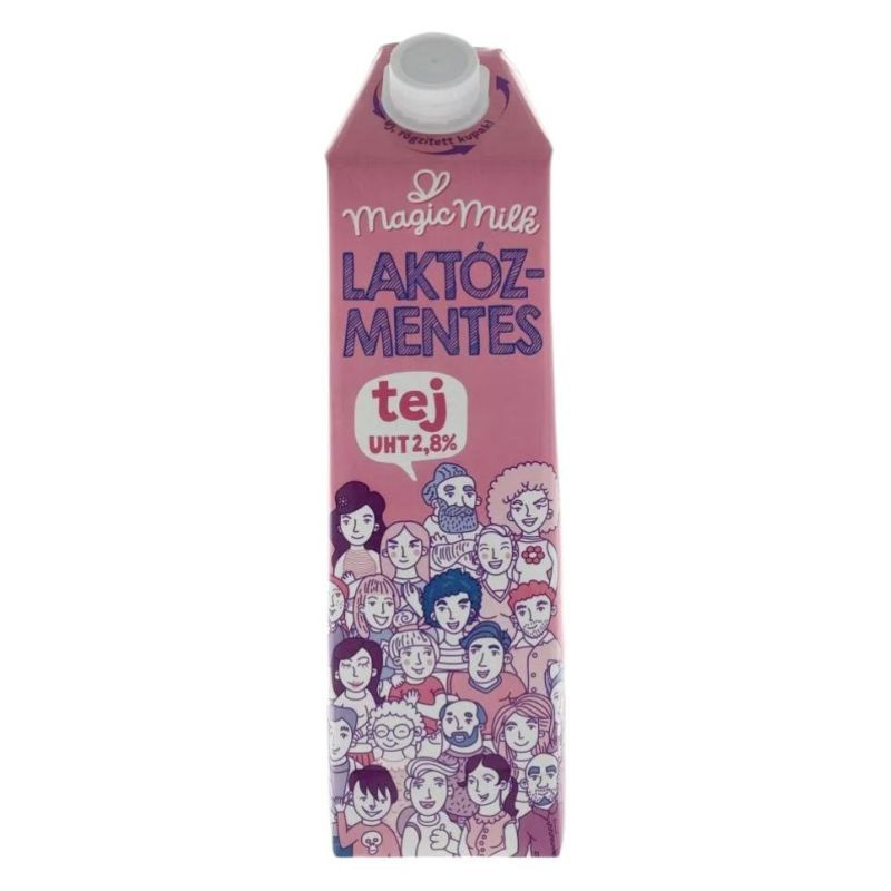 Magic Milk. Ultramagas hőmérsékleten hőkezelt, homogénezett, 2,8% zsírtartalmú laktózmentes tej, 1 literes tetra gemina aseptic kiszerelésben. 138 -140°C - on 4 másodperces hőntartással pasztőrözött, 200 bar nyomáson homogénezett 2,8% zsírtartalomra beállított, 5 rétegű tetra gemina aseptic csomagolású laktózmentes tejtermék. Hűtést nem igényel.
