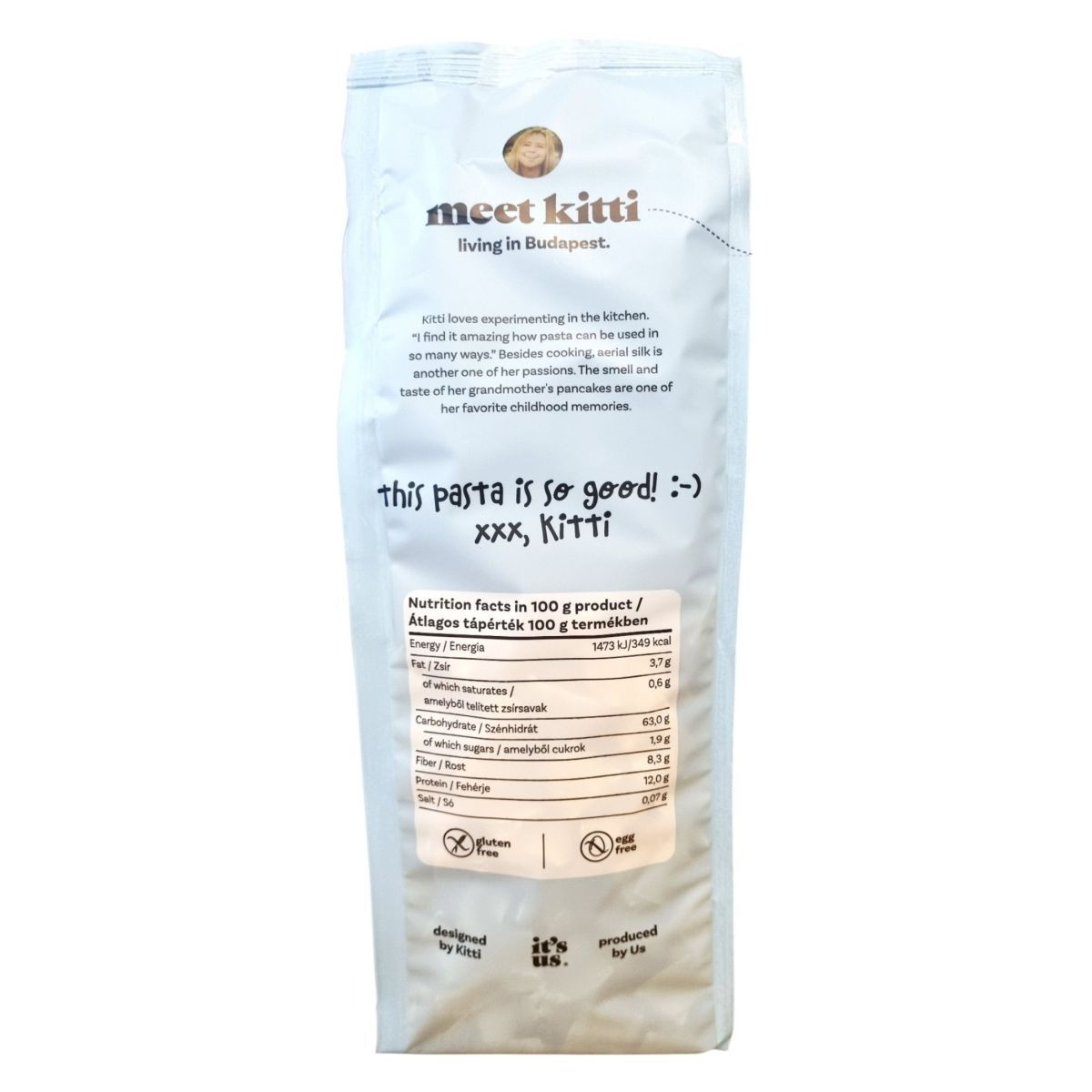 A Kitti’s Chickpea Pasta a Mimen márka terméke, amely a csicseriborsó természetes fehérjéit és rostjait egyesíti. Gluténmentes, tojásmentes és vegán tészta, amely ideális az egészséges, kiegyensúlyozott étrendhez. Könnyen emészthető, fehérjében gazdag alapanyag, mely gyorsan elkészíthető és sokféleképpen felhasználható a mindennapi konyhában.