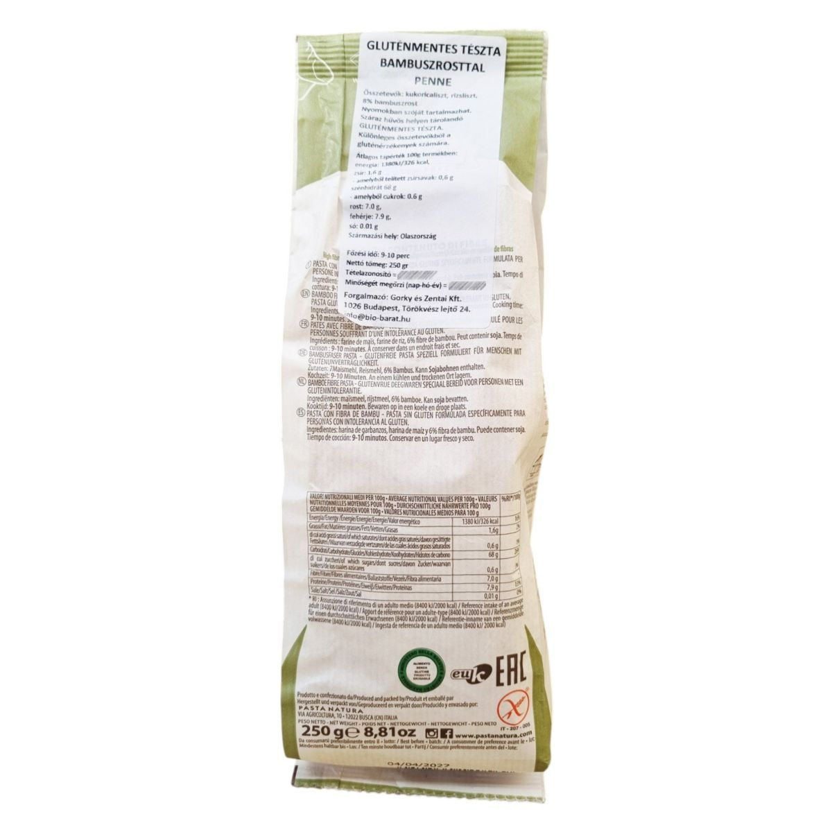 A PASTA NATURA® Bamboo Fibre Pasta egy különleges gluténmentes tészta, amely 8% bambuszrostot tartalmaz. Az olasz eredetű termék ideális lehet gluténérzékenyek számára, és bio étrendi irányzatba is illeszkedhet. A tészta elkészítése egyszerű: forralj fel vizet, adj hozzá olívaolajat és sót, majd főzd a tésztát 9-10 percig. A termék 250 g-os kiszerelésben kapható, és száraz, hűvös helyen tárolandó. Forgalmazója a Gorky és Zentai Kft., amely Budapesten található.