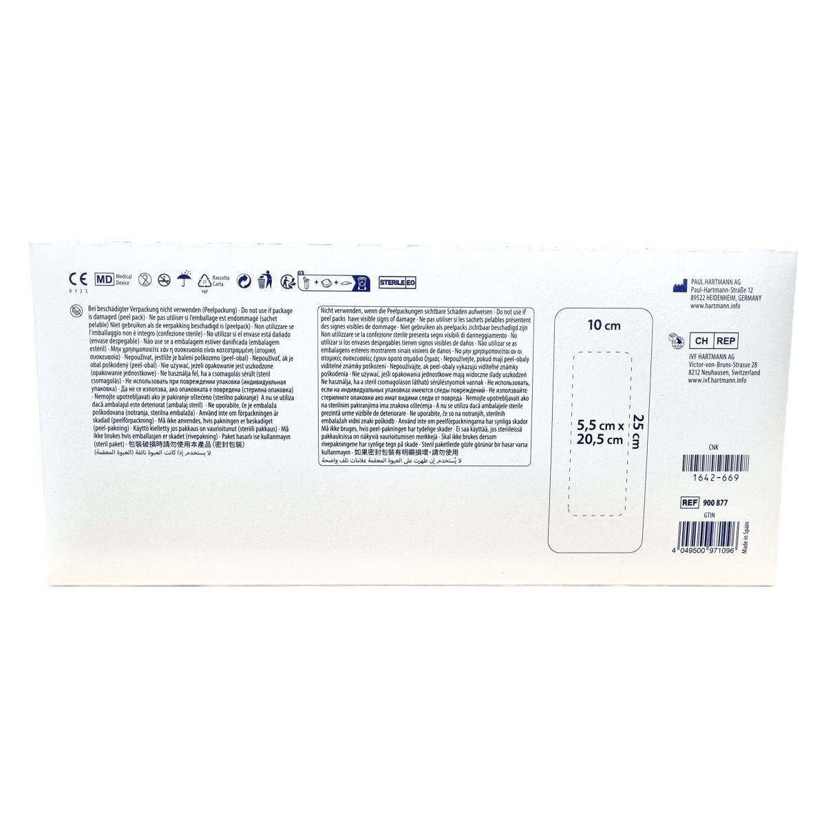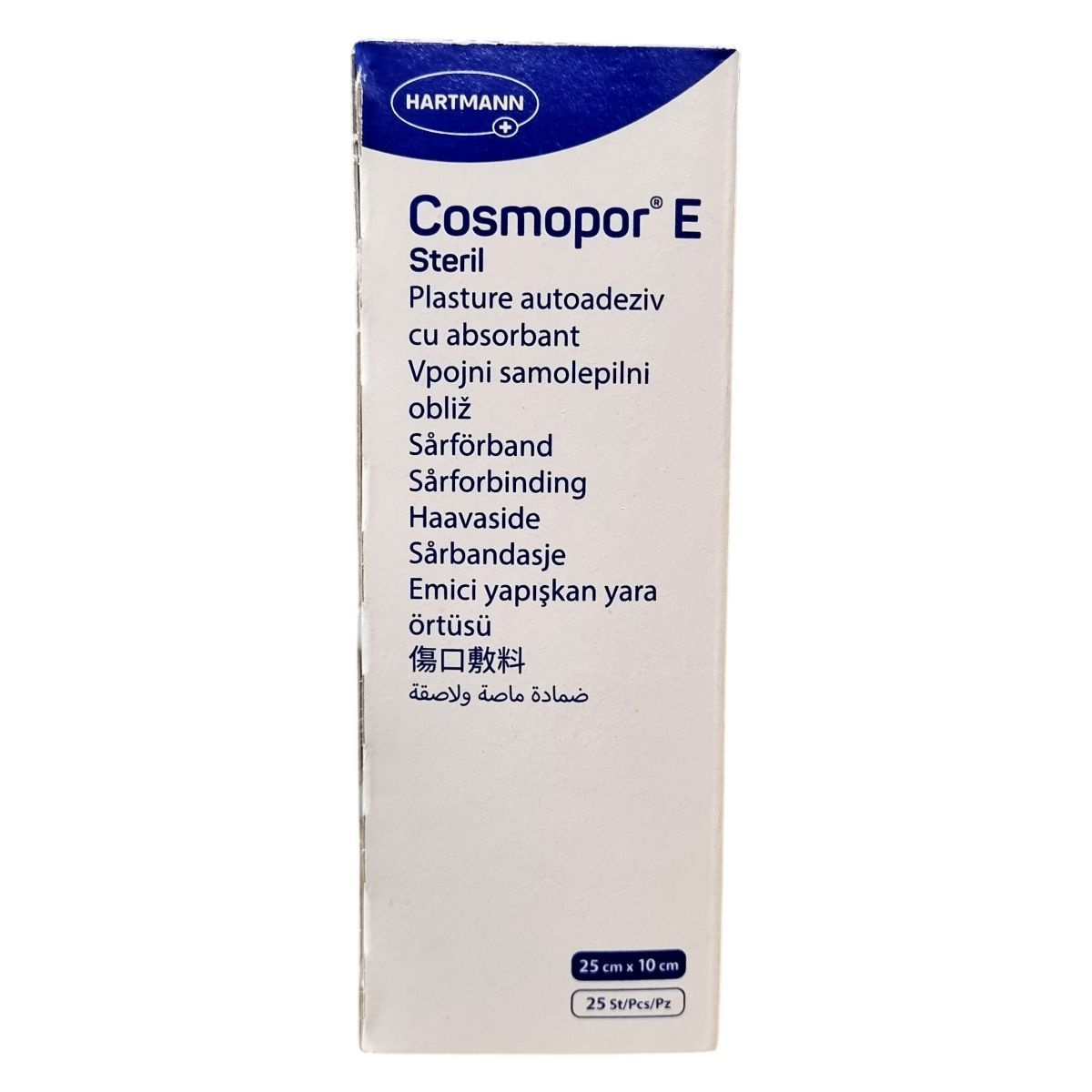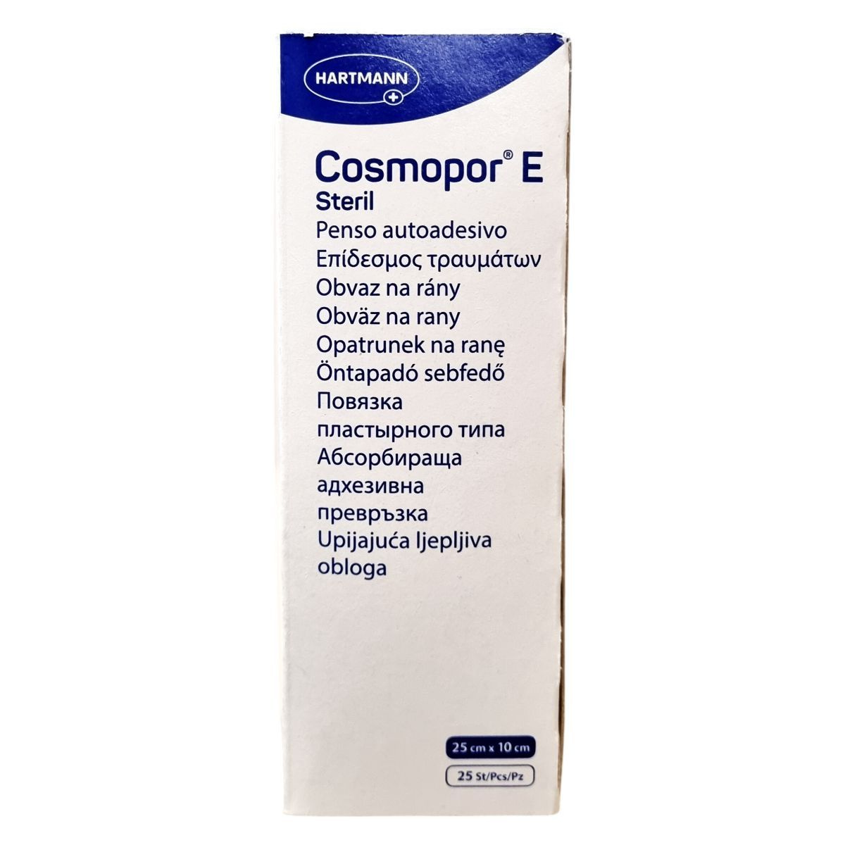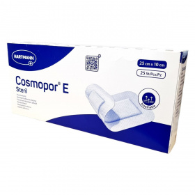 A Cosmopor E Steril egy légáteresztő, abszorbens sebfedő tapasz, mely mérete 25 cm x 10 cm, és 25 darabos kiszerelésben érhető el. A steril tapasz csökkenti a fertőzés kockázatát és megkönnyíti a sebek gyógyulását. Az EO sterilizált termék különösen praktikus peel csomagolásban kerül forgalomba, amely biztosítja a húzásra történő egyszerű és gyors alkalmazhatóságot. Nem szabad használni, ha a csomagolás sérült vagy láthatóan rongált. A termék Spanyolországban készült és megfelel az európai minőségi és egészségügyi előírásoknak, melyet a CE jelölés és a Medical Device besorolás garantál. A termék több nyelven is azonos funkcióval kerül forgalomba, így az összetett európai piac igényeit is kielégíti.
