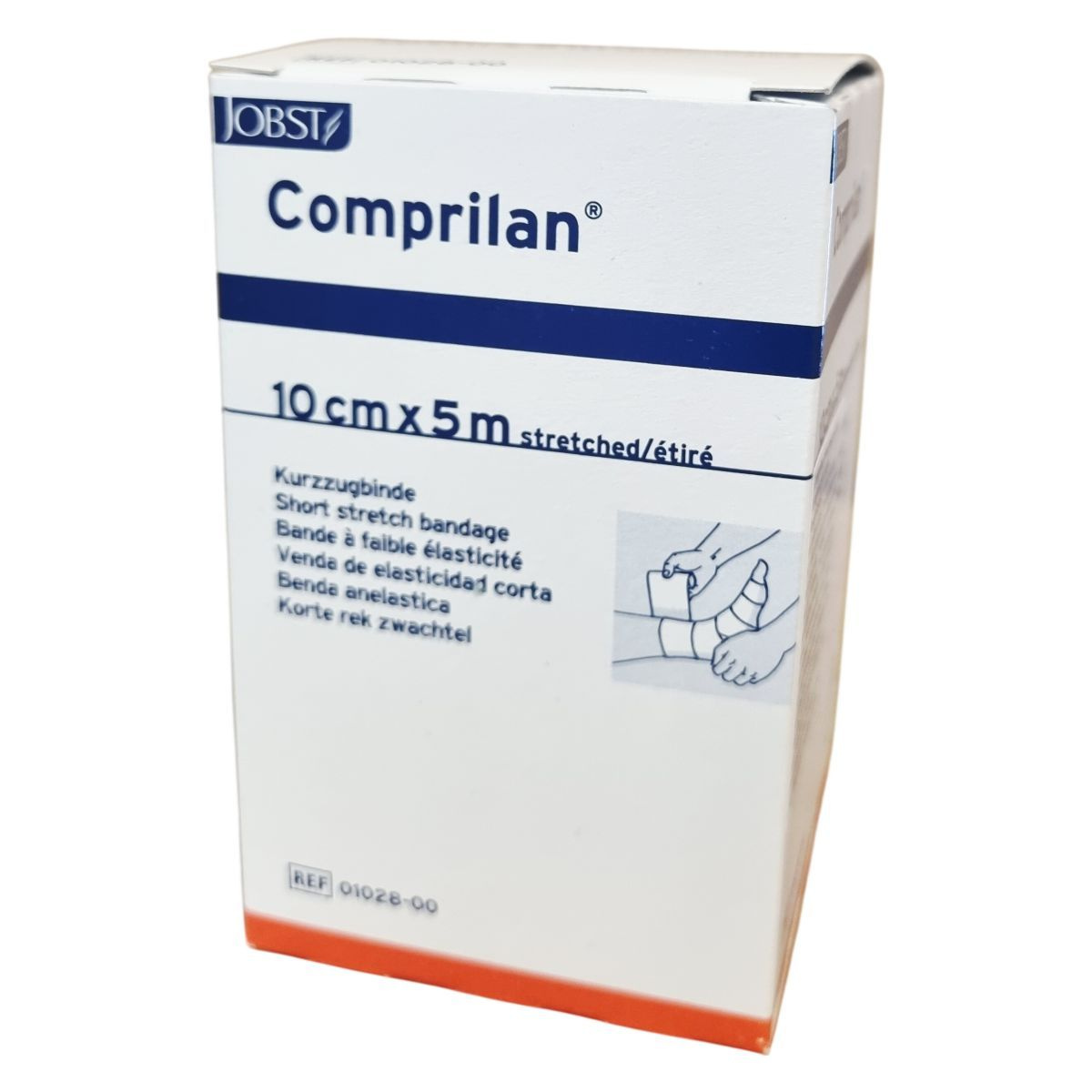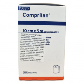 A JOBST Comprilan® kompressziós pólya rövid megnyúlású és 10 cm széles, 5 méter hosszú textilpólya, amely 100% pamutból készült, latexmentes, így biztonságos használatot biztosít. Orvosi eszköz kategóriába tartozik, amely a vénás és nyirokrendszeri problémák kezelését támogatja. A terméket Németországban gyártják, és szobahőmérsékleten, száraz, napfénytől védett helyen kell tárolni. A csomagoláson található további információ a termék méretéről és gyártási adatairól.