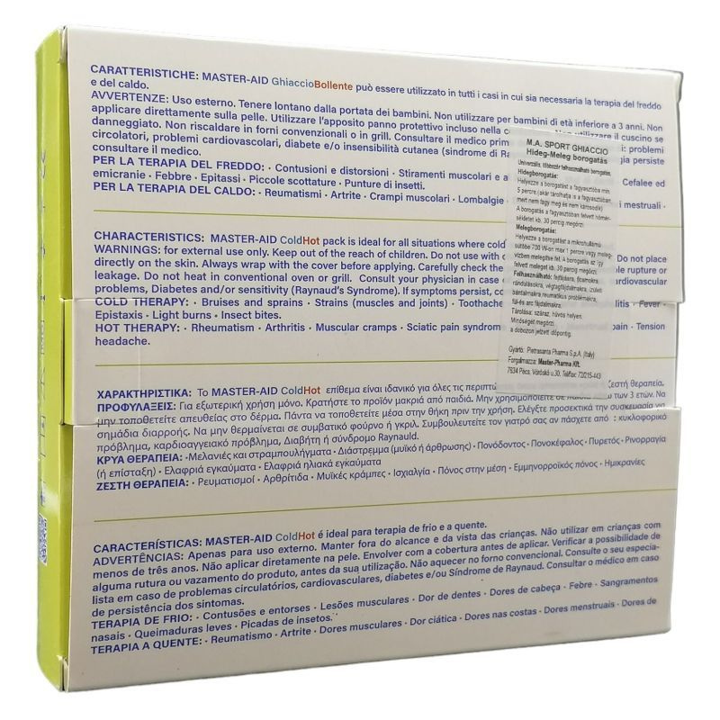 Univerzálisan felhasználható minden sérülés illetve ízületi fájdalom kezelésére és csillapítására. Polipropilén-glikol, nátrium-poliakrilát és víztartalmú PA/PE anyaggal töltött műanyag párna. A tépőzárral ellátott pamut hatású tasak segíti a párna biztonságos rögzítését, valamint megóvja a bőrt a túl hideg illetve meleg okozta esetleges irritációtól, így a terápia során komfortosabb érzés nyújt. A párna néhány perces (2-3 perc 180 C fok) mikro sütőben vagy forró vízben való felmelegítés után megtartja a hőt, illetve fagyasztóban való hűtés után a hideget. Az így felvett hőmérsékletet kb. 30 percig megőrzi. Hosszantartó fagyasztóban történő tárolás esetén sem szenved károsodást, nem fagy meg.