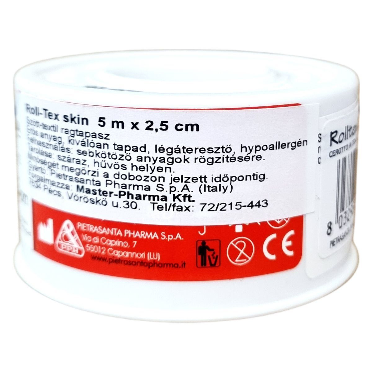 A Rolltex® skin szövött-textil ragtapasz egy erős anyagból készült, kiváló tapadást biztosító termék, amely légáteresztő és hypoallergén tulajdonságokkal rendelkezik. Ideális választás sebkötöző anyagok rögzítésére. A termék latexmentes, így érzékeny bőrűek számára is megfelelő. Tárolása száraz, hűvös helyen javasolt. A terméket a Pietrasanta Pharma S.p.A. gyártja, és a Master-Pharma Kft. forgalmazza Magyarországon.
