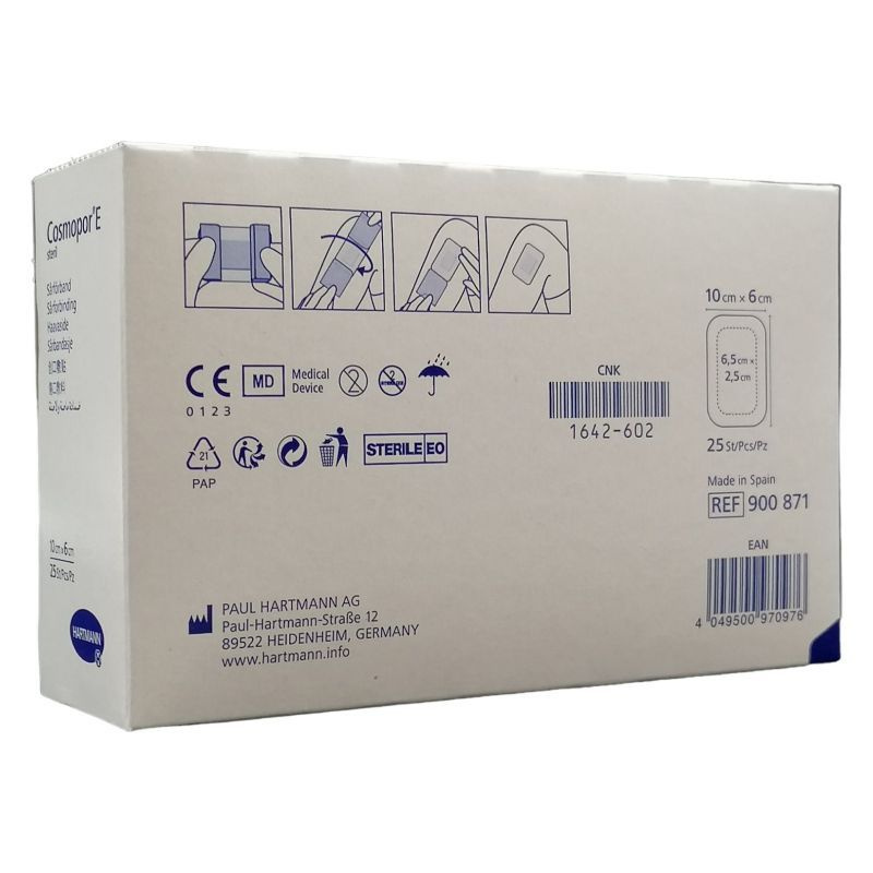 10x6 cm - 25 db/doboz Cosmopor bőrbarát ragasztóval bevont nemszőtt textília hordozószövettel készült öntapadó kötszer, a sebbe nem ragadó, porózus réteggel borított nedvszívó sebpárnával. A Cosmopor jól használható posztoperatív sebellátás területén, illetve kisebb sérülések steril ellátásánál.