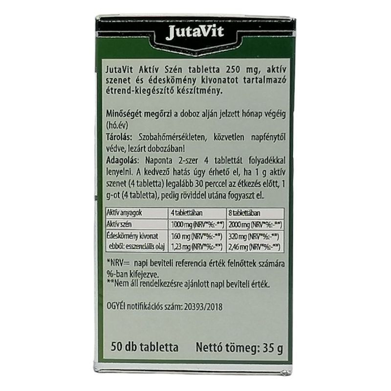 Az aktív szén részt vesz az étkezést követő túlzott bélgáz képződés csökkentésében. Az édeskömény támogatja az emésztőrendszer egészségét, hozzájárul a puffadásos érzés enyhítéséhez. Adagolás: Naponta 2-szer 4 tablettát folyadékkal lenyelni. A kedvező hatás úgy érhető el, ha 1g aktív szenet (4 tabletta) legalább 30 perccel az étkezés előtt, 1 g-ot (4 tabletta) pedig röviddel utána fogyaszt el.