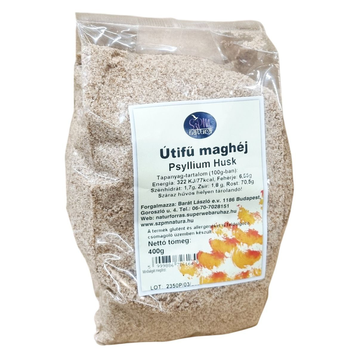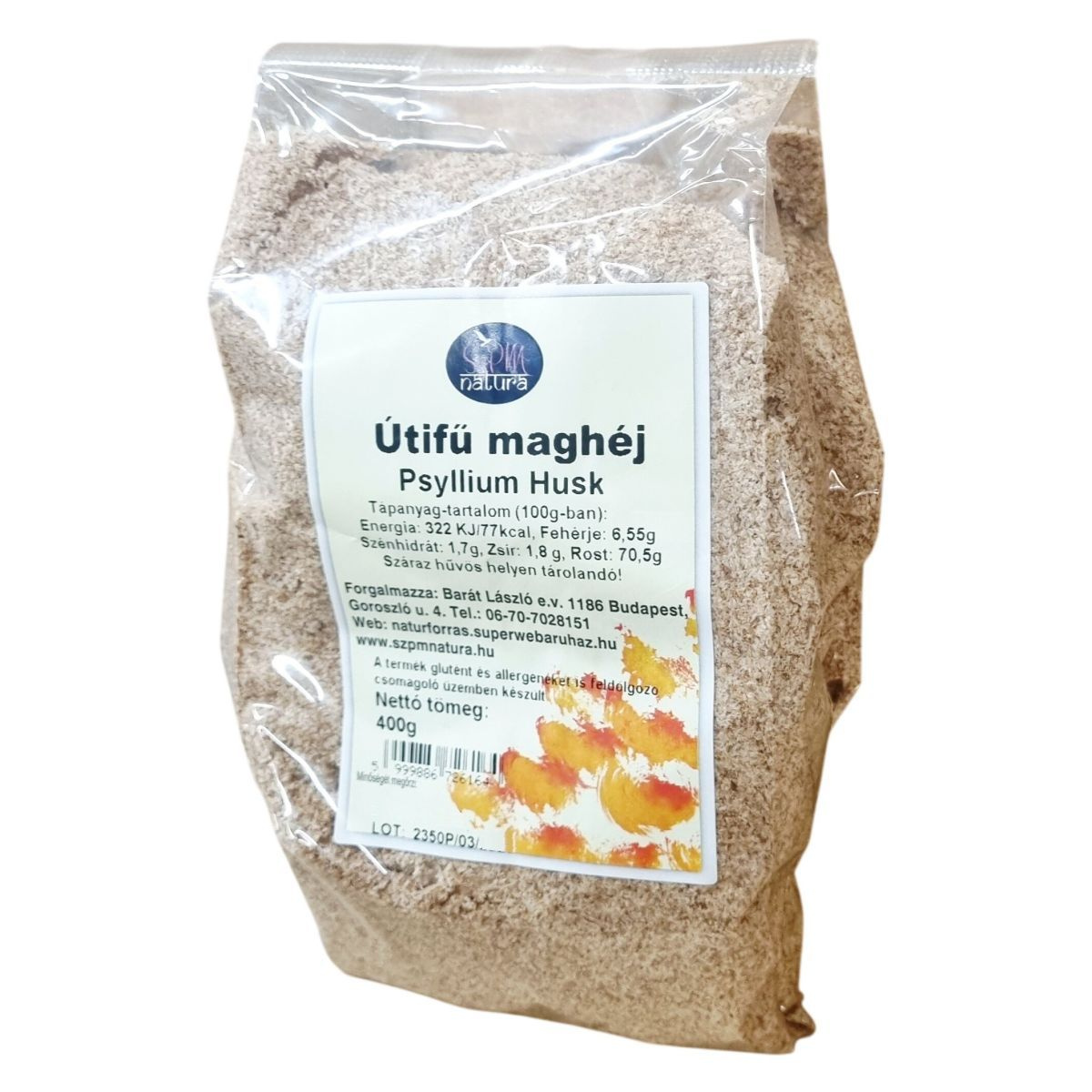 Az útifű maghéj egy természetes rostforrás, amely elsősorban emészthető rostokat tartalmaz, és alacsony energiatartalmú. 400 grammos kiszerelésben kerül forgalomba. A termék előállítása egy olyan csomagolóüzemben történik, ahol glutént és más allergéneket is feldolgoznak, ezért allergén-érzékenyeknek körültekintően ajánlott a használata. A tároláshoz száraz és hűvös környezet szükséges a kiváló minőség megőrzése érdekében.