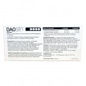 A DAOSiN tabletta a természetes diamin-oxidáz enzim kiegészítésére szolgálhat, amely a hisztamin lebontásában játszik szerepet. Fogyasztása támogathatja a hisztamin-anyagcsere egyensúlyát, különösen hisztaminban gazdag ételek fogyasztása esetén.