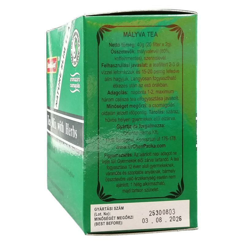 Filteres mályva tea, amely nyugtató hatású, segíti a légutak és a bőr egészségének megőrzését.