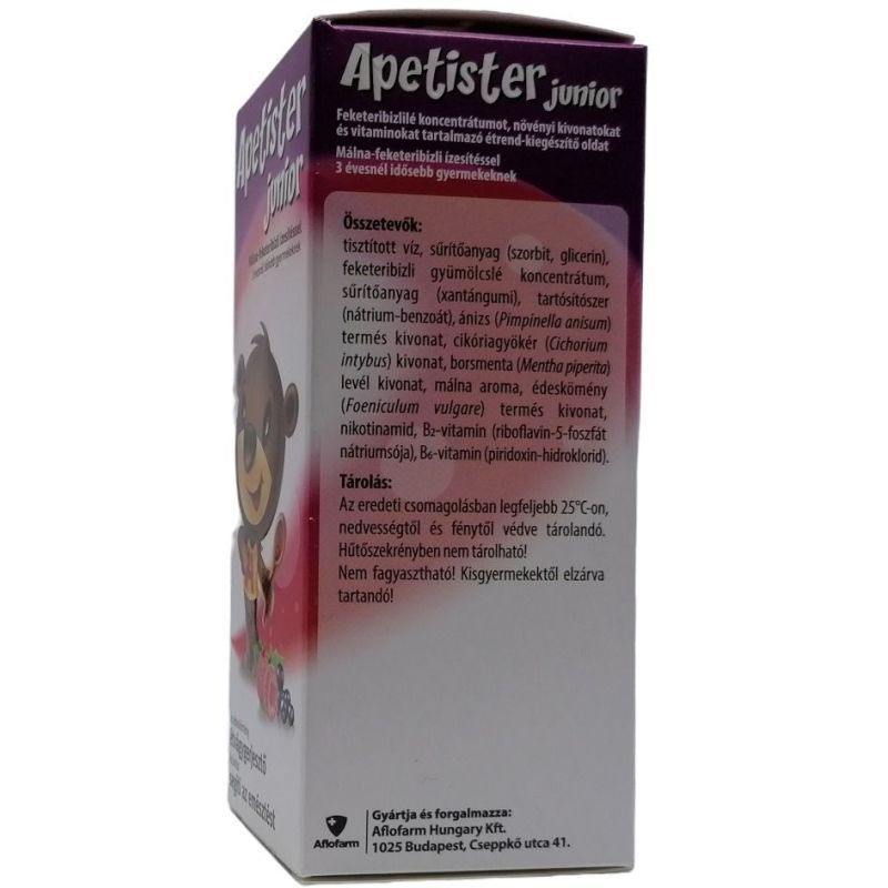 Az Apetister junior összevetőiből az ánizs segíti az emésztést, a borsmenta hozzájárul a bélrendszer normál működéséhez, a cikóriagyökér serkenti az emésztőnedvek termelődését és segíti a bélmozgást. Az oldat édeskömény kivonatot is tartalmaz, mely étvágygerjesztő, segíti az emésztést és a gázok távozását. A niacin, a B2-vitamin és a B6-vitamin összetevői a normál energiatermelő anyagcsere-folyamatokat is támogatják.