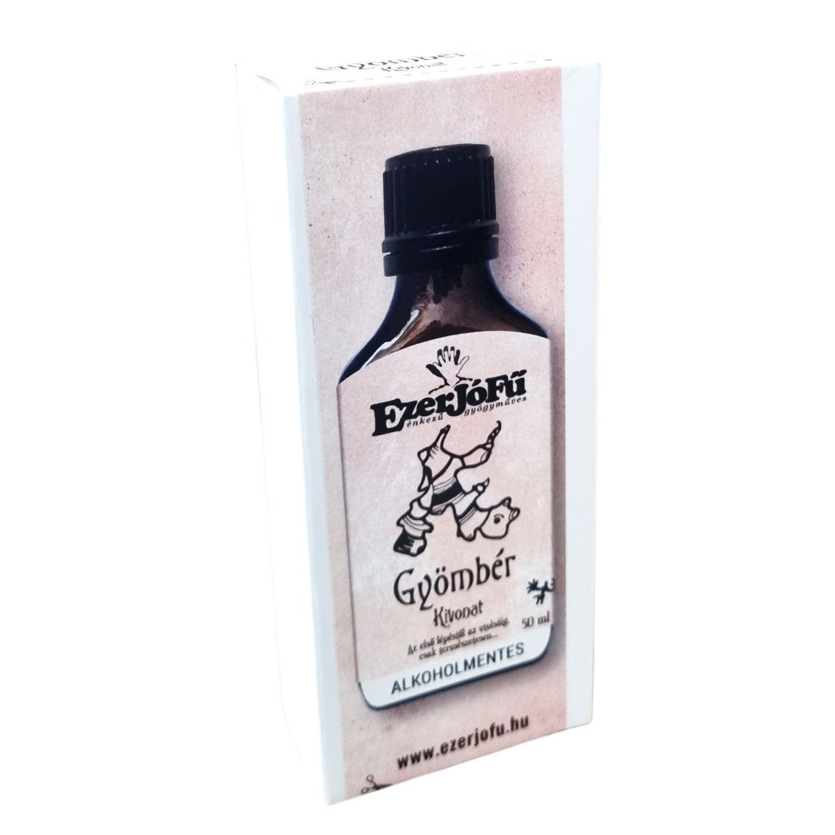 Az EzerJófű Gyömbér Kivonat 50 ml-es kiszerelésben készül alkoholmentes változatban. A termék növényi glicerinből és rendezett vízből áll, melybe gyömbér kivonat került. Használat előtt a flakont fel kell rázni. A fogyasztása naponta háromszor 20-40 csepp ajánlott, étkezések előtt fél órával, így táplálkozásunkban sokféleképpen alkalmazható. A készítmény tárolására a száraz, hűvös és sötét hely ajánlott, bontás után hűtőszekrényben tartandó. A terméket az Ezerjofu Gyógynövény Kft. gyártja és forgalmazza Zalaegerszegen.