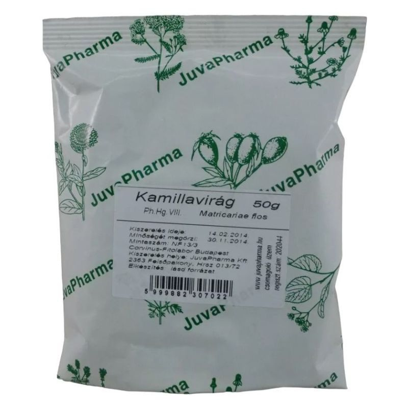 A Juvapharma kamillavirág tea kamillában előforduló illóolajok főleg gyulladáscsökkentő hatásúak.