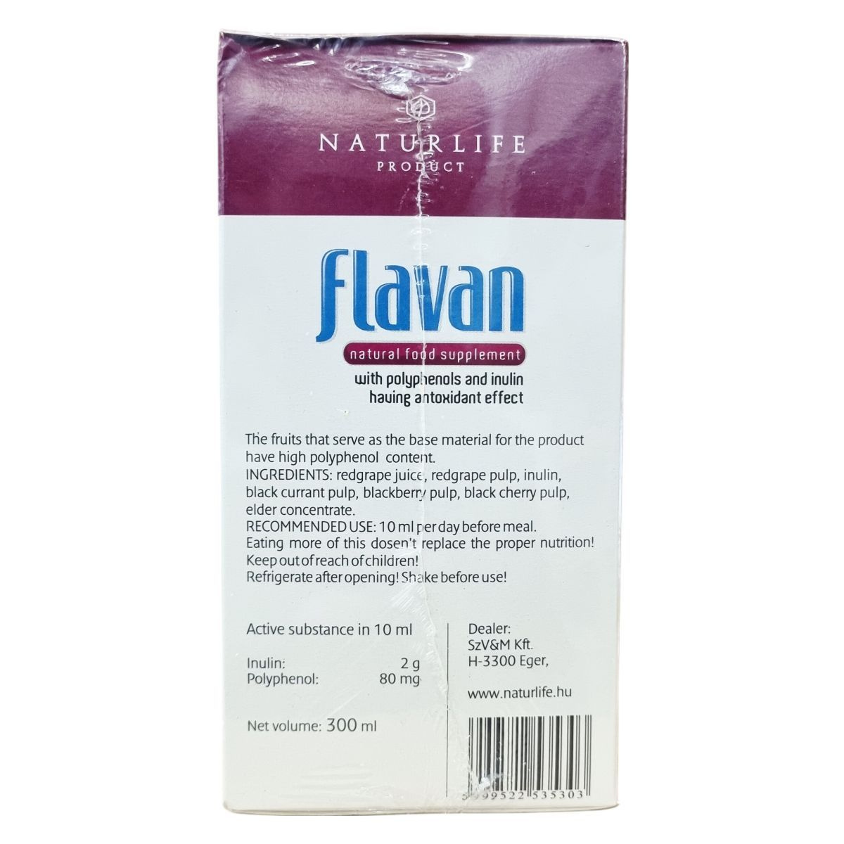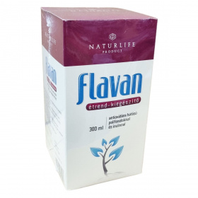 A flavan nevű étrend-kiegészítő alapanyagául szolgáló gyümölcsök magas polifenol tartalommal rendelkeznek. A termék összetevői között szerepelnek a szőlőlé és szőlővelő, feketeribizli-, feketeszeder-, feketecseresznye- velő valamint bodzasűrítmény, továbbá inulin is található benne. A termék nettó térfogata 300 ml. A flavan antioxidáns hatású polifenolokat és inulint tartalmazó ital, amely a napi 10 ml-es adagolás mellett fogyasztható étkezés előtt. A termék kisgyermekektől elzárva tartandó, nem helyettesíti a kiegyensúlyozott vegyes étrendet és az egészséges életmódot. Felbontás után a terméket hűtve kell tárolni, és fogyasztás előtt felrázandó.