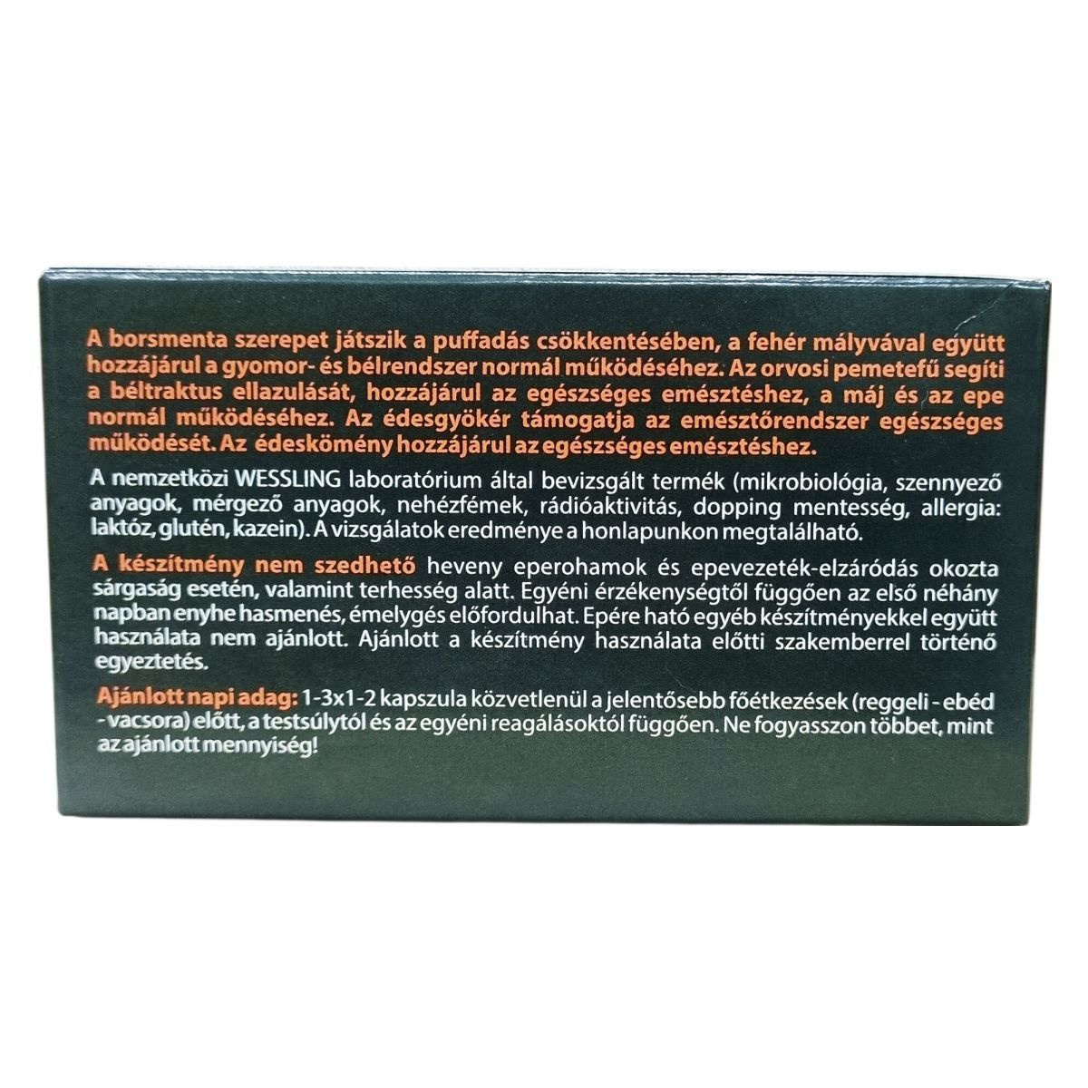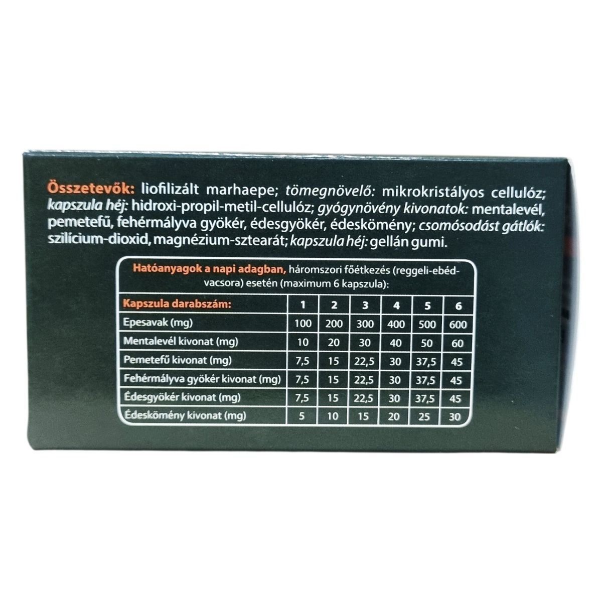 Természetes epesavakat, és gyógynövényeket tartalmazó, bélben oldódó étrend-kiegészítő kapszula, az emésztés és az epeműködés támogatására.