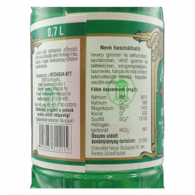 Főbb oldott alkotóelemek: Magnézium (Mg2+): 1420mg/l, Nátrium (Na+): 3610mg/l, Kalcium (Ca2+): 360mg/l, Hidrogénkarbonát (HCO3): 561mg/l, Szulfát (SO42-): 13100mg/l, Klorid (Cl-): 620mg/l, Összes alkotóelem: 21300mg/l.