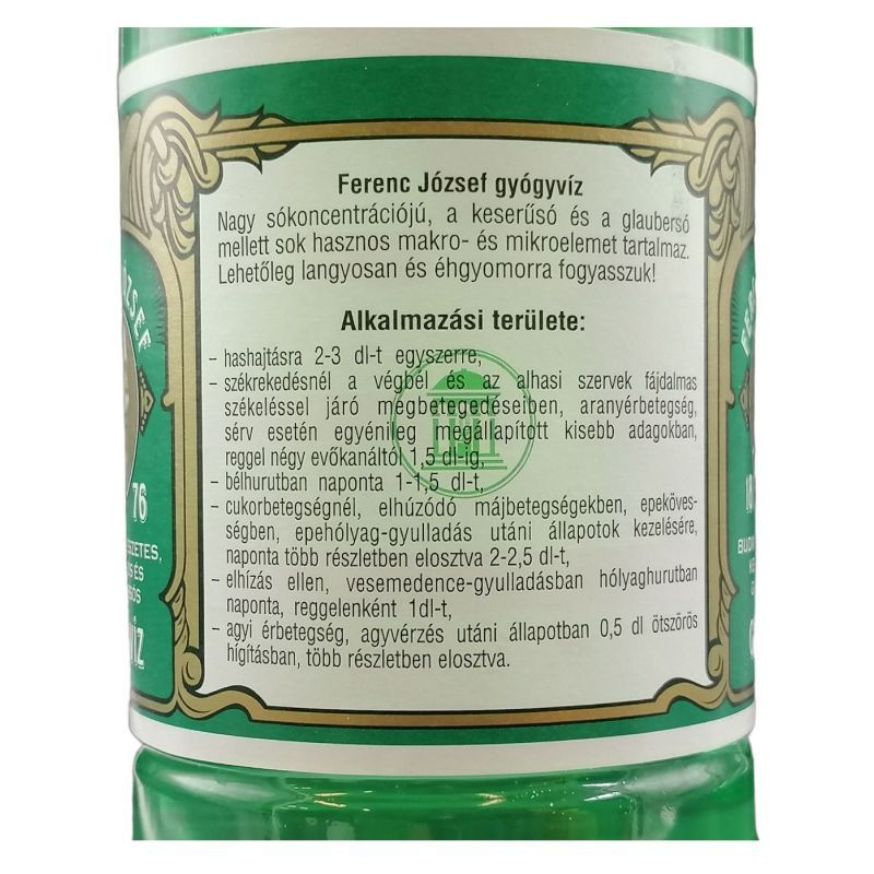 A keserűsó kedvező hatására vonatkozóan már több mint száz évvel ezelőtt jelentek meg cikkek különböző orvosi közlönyökben, amelyek ismeretében a múlt században és e század első felében sok orvos alkalmazta előszeretettel a Ferenc József gyógyvizet bizonyos betegségek kezelésében, gyógyításában. A Ferenc József keserűvíz elsősorban székrekedésre, valamint enyhe bélgyulladás kezelésére alkalmas.