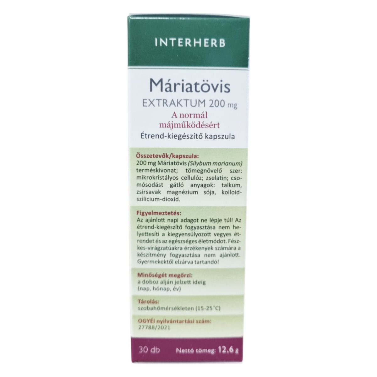 A máriatövis hozzájárulhat a máj egészségének megőrzéséhez, a megfelelő májfunkciók fenntartásához, támogathatja az egészséges májműködést, a májszövet, illetve a májsejtek normál regenerációját, hozzájárulhat az emésztőrendszer egészséges működéséhez. Egy kapszula 200 mg extraktumot, 160 mg szilimarin tartalmat és 4800 mg növényi őrleménynek megfelelő mennyiséget tartalmaz.