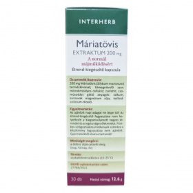 Máriatövis termés kivonat: 200 mg/kapszula (ebből szilimarin: 160 mg), 1 kapszula megfelel 4800 mg máriatövis őrleménynek.