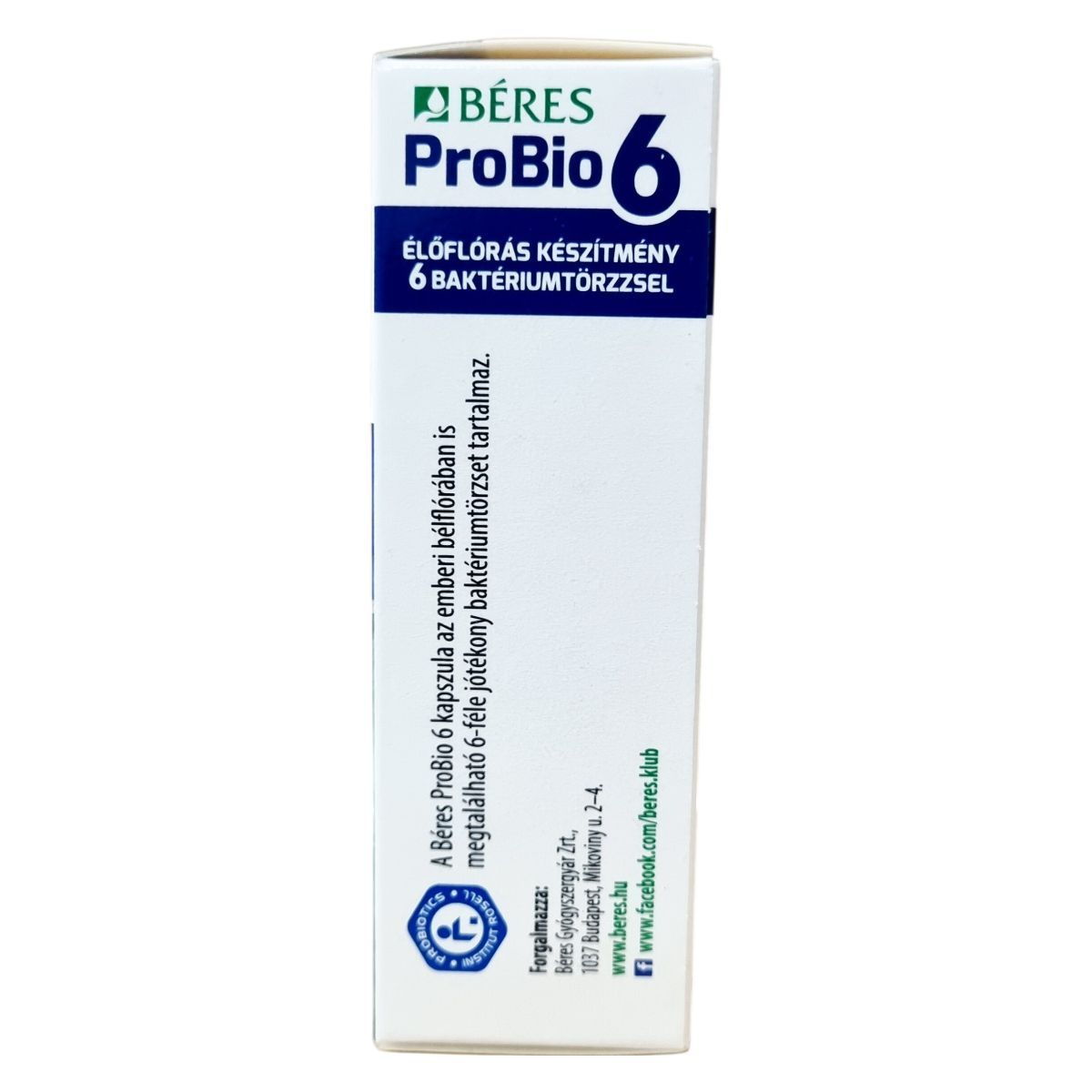 A Béres ProBio 6 kapszula olyan élőflórás étrend-kiegészítő, amely hatféle, az emberi bélflórában is megtalálható jótékony baktériumtörzset tartalmaz. A termék garantáltan legalább 5 milliárd élő baktériumot tartalmaz kapszulánként, ami 30 adagolást biztosít egy dobozban. Az összetevők között megtalálhatók a baktérium törzsek mellett a burgonyakeményítő, csomósodást gátló anyagok és antioxidáns. A terméket ajánlott 4 éves kor felett alkalmazni az ajánlott adagolási mennyiség szerint, és gyermekektől elzárva tárolni. A készítmény nem helyettesíti a kiegyensúlyozott étrendet és az egészséges életmódot, továbbá tartalmazhat tejport és szóját, ezért érdemes figyelembe venni allergén információkat. A termék tárolása során célszerű a megadott hőmérsékleti tartományt betartani a minőség megőrzése érdekében.