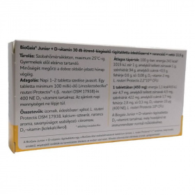 A BioGaia Junior + D-vitamin rágótabletta egy, a BioGaia által szabadalmaztatott baktériumtörzset, Lactobacillus reuteri Protectis-t* tartalmaz, mely humán eredetű, anyatejből izolálták, és természetes élettere az emberi szervezet.