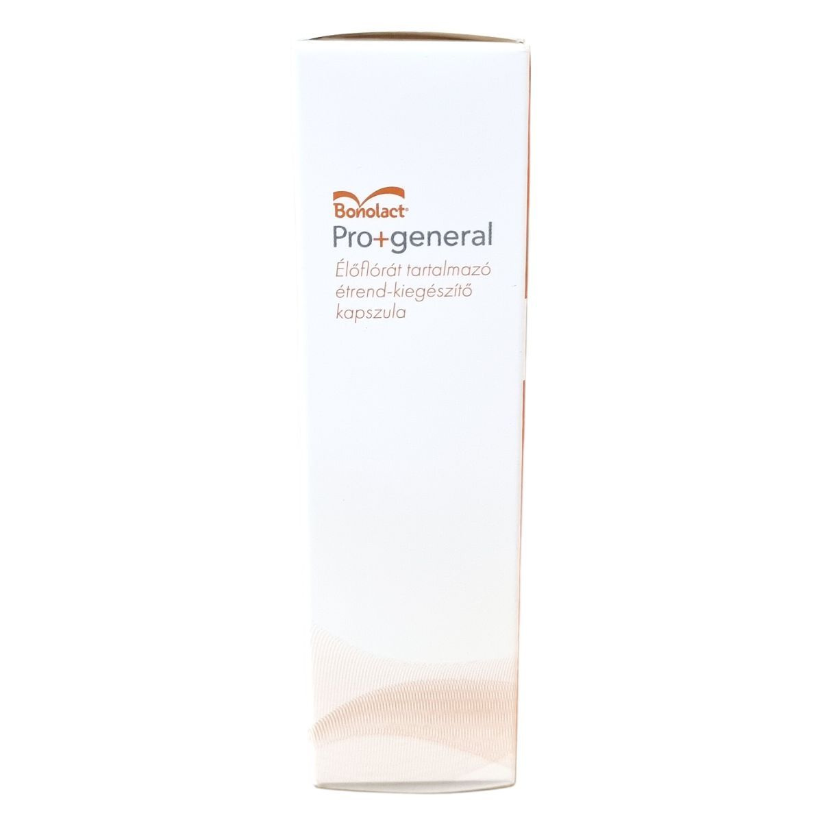 A Bonolact® Pro+general kapszula Lactobacillus acidophilus, LA-5® és Bifidobacterium animalis subsp. lactis, BB-12® aktív baktériumtörzseket tartalmaz, telepképző egységek számában kifejezve. A kapszulát 3 éves kortól ajánlott fogyasztani, napi adagja gyermekeknek egy kapszula, míg 12 éves kortól és felnőtteknek napi két kapszula, étkezés közben, folyadékkal. A kapszula tartalmát felbontás után maximum 37 °C-os folyadékban érdemes feloldani, és közvetlenül fogyasztani. Antibiotikum-kezelés esetén a kapszulát legalább három órával a gyógyszer bevétele után célszerű alkalmazni. A készítmény kapszulaanyagát hidroxipropil-metil-cellulóz alkotja, színezőanyagként kalcium-karbonátot tartalmaz, valamint csomósodást gátló anyagként mikrokristályos cellulóz és magnézium-sztearát található benne. Fontos, hogy az érzékeny személyek ne fogyasszák a terméket, valamint nem ajánlott három év alatti gyermekeknek és immunhiányos állapotban lévőknek. Megfelelő tárolás esetén a termék 25 °C alatt, száraz, fénytől védett helyen őrizhető meg legjobban. A termék LA-5® és BB-12® a Chr. Hansen bejegyzett védjegyei. A bontott csomagolás teljes tartalmát az ajánlott adagolás szerint érdemes felhasználni.