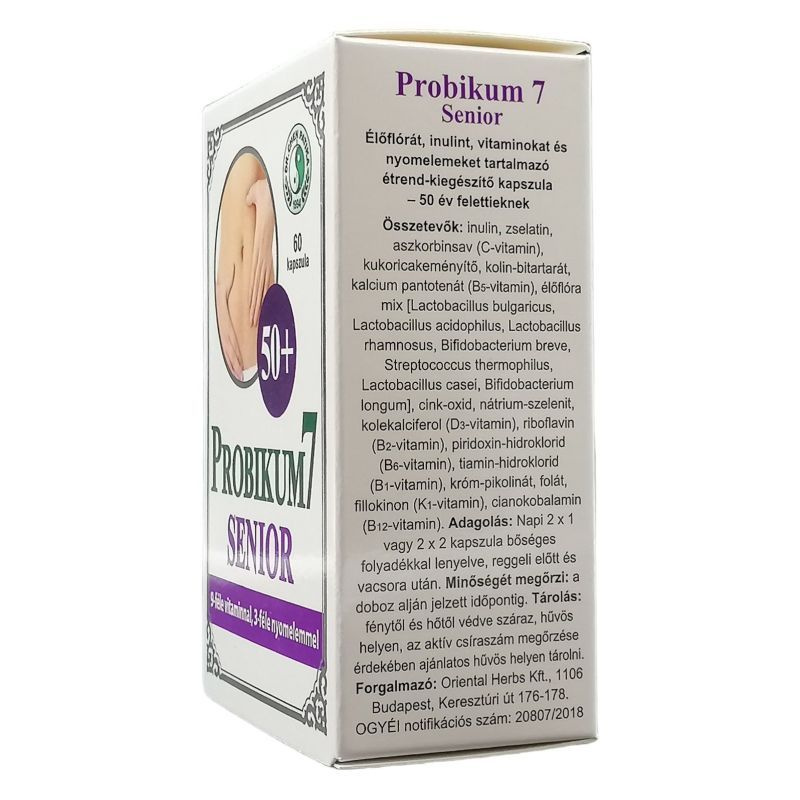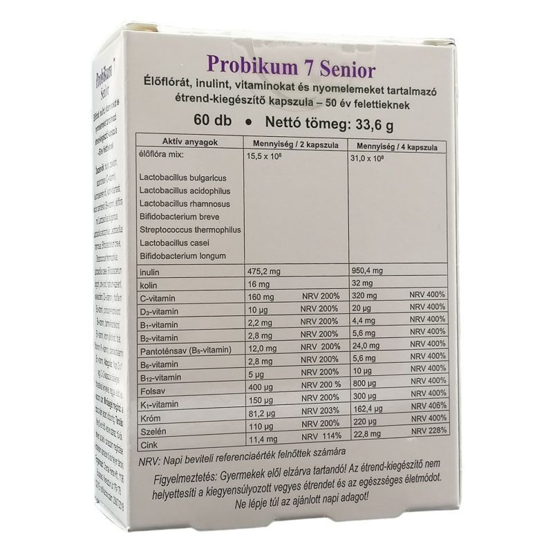 Élőflórát, inulint, vitaminokat és nyomelemeket tartalmazó étrend-kiegészítő kapszula - 50 év felettieknek.