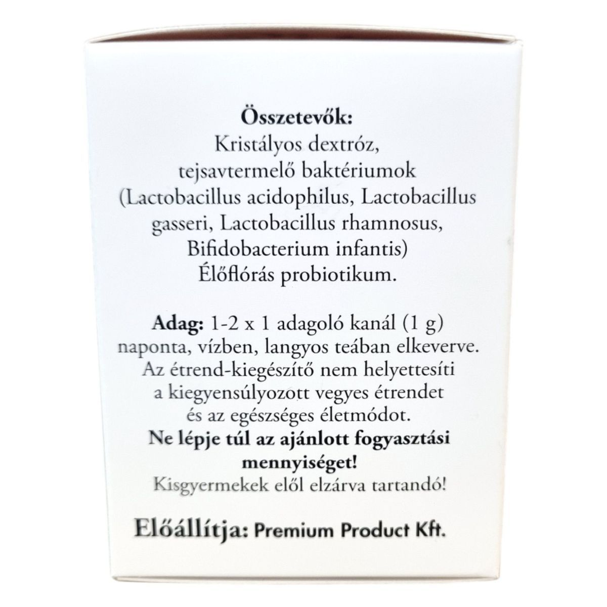Kristályos dextróz, tejsavtermelő baktériumok (Lactobacillus acidophilus, Lactobacillus gasseri, Lactobacillus rhamnosus, Bifidobacterium infantis)
