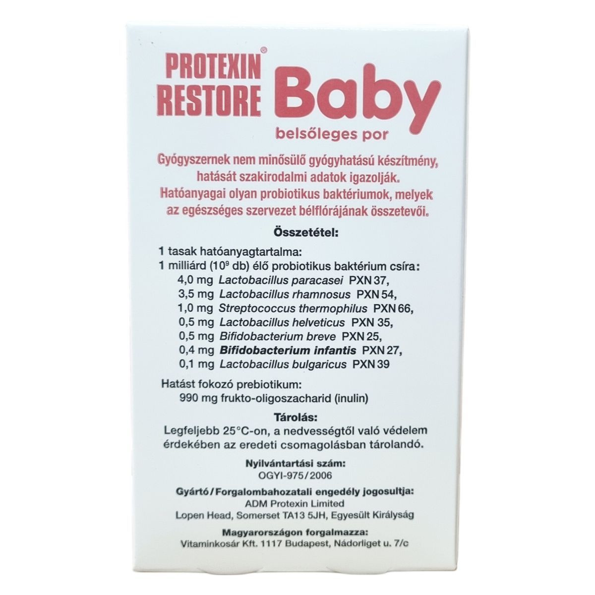 A Protexin Restore hatóanyagai olyan probiotikus baktériumok, melyek az egészséges szervezet bélflórájának összetevői. Csecsemőknek és kisgyermekeknek.