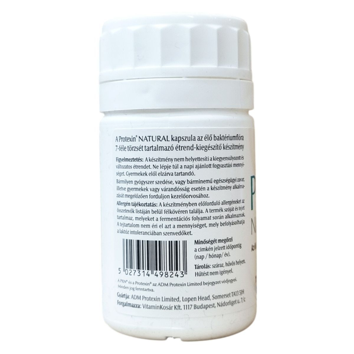 A Protexin® NATURAL kapszula 7-féle élő baktériumtörzset tartalmaz az egészséges baktériumflóra támogatására. A hatóanyagokat prebiotikum, frukto-oligoszacharid egészíti ki, amely segítheti az élő baktériumok fennmaradását és szaporodását. Az ajánlott adag felnőttek számára napi két kapszula, amelyet az étkezések után érdemes bevenni, különösen antibiotikum használata esetén, amely után legalább 3-4 óra várakozás javasolt. Allergénként tej és szója fordul elő a készítményben, de ezek mennyisége nem okoz problémát laktóz intolerancia esetén. A termék a fő összetevők mellett töltőanyagokat és csomósodásgátlót is tartalmaz a megfelelő forma és stabilitás érdekében. Fontos, hogy a készítmény nem helyettesíti a változatos, kiegyensúlyozott étrendet, és gyermekek elől elzárva kell tartani.