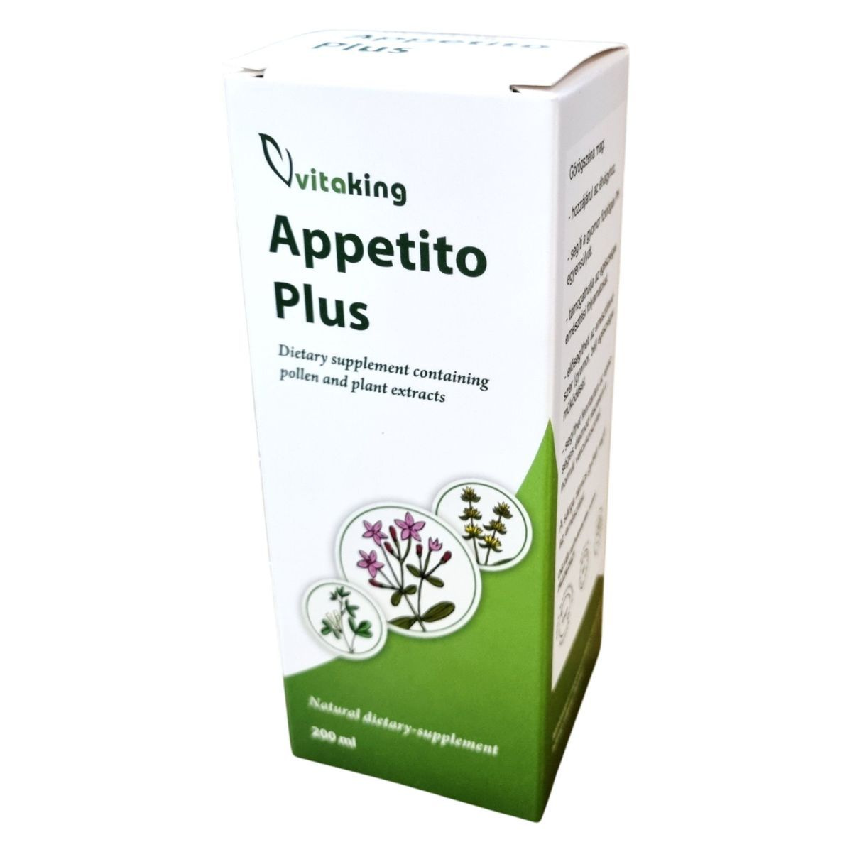 Az Appetito Plus egy természetes étrend-kiegészítő, amely pollen és különböző növényi kivonatokat tartalmaz. A termék célja, hogy támogassa az étvágyat és az emésztési folyamatokat. A görögszéna mag hozzájárulhat az étvágyhoz és segíthet fenntartani az egészséges életmód részeként a normál vércukorszintet. A sárga tárnicsgyökér segítheti az emésztést. A termék használata előtt felrázandó, és a napi ajánlott mennyiséget nem szabad túllépni. A termék nem helyettesíti a vegyes étrendet és az egészséges életmódot.