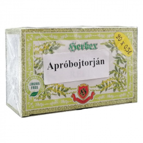 Növeli az étvágyat és segíti a gyomorsav termelődést. Emésztőrendszeri panaszok kezelésére is alkalmas. Használhatjuk szájüreg és torok öblögetésre. Összetétel: apróbojtorján. Nettó tömeg: 60 g, 20 db 3 g-os filter tasak. Elkészítése: 1 filter tasakot leforrázunk 0,5 l forró vízzel, majd 10 percig állni hagyjuk.