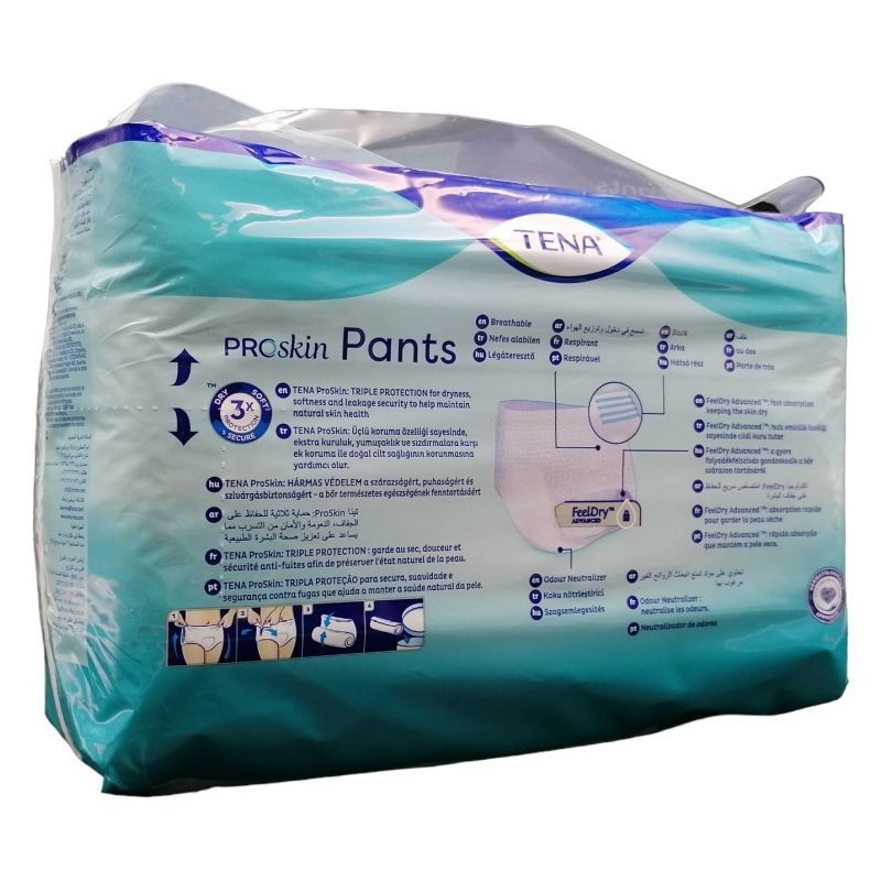 Más hagyományos felnőtt pelenkanadrágoktól eltérően a TENA ProSkin Pants pelenkanadrág nedvességcsökkentő technológiával rendelkezik a száraz érzés, a szivárgás elleni védelem és a szagsemlegesítés érdekében.
