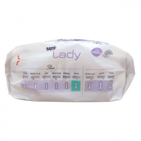 A légáteresztő, anatómiailag formált SENI LADY EXTRA inkontinencia betét jellemzői: jól követi a testformát, semlegesíti a kellemetlen szagokat, felső rétege a nagyobb mennyiségű híg folyadékot (vizelet, szülés utáni váladék) is gyorsan elvezeti, majd nem engedi visszanedvesedni, így felszíne száraz marad. Egyszerűen és biztosan rögzíthető a fehérneműhöz, kényelmet és diszkréciót garantál.