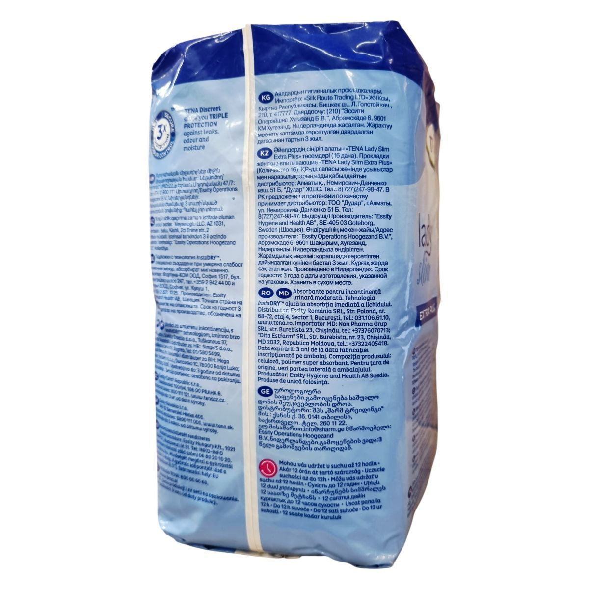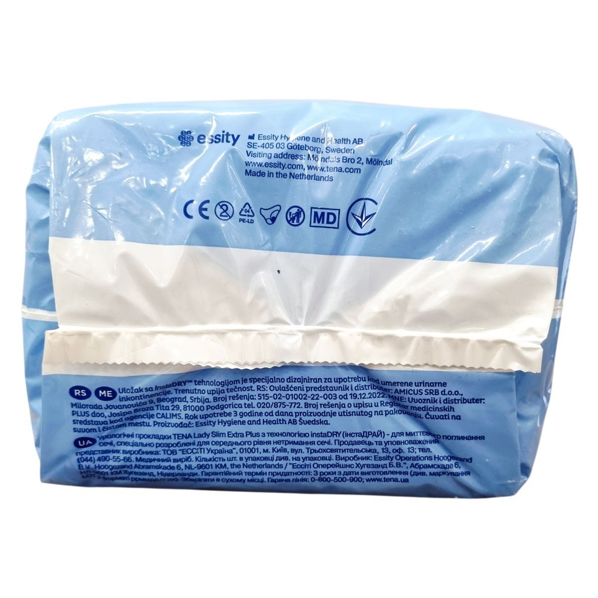 A TENA Lady Slim Extra Plus a TENA Protects Program része, amely folyamatosan törekszik a környezeti lábnyom csökkentésére és az emberek jólétének védelmére. Az instaDRY™ technológia segítségével a betét azonnal magába szívja a nedvességet és mélyen a belső rétegbe zárja, akár 12 órás szárazságot biztosítva. A termék háromszoros védelmet nyújt a nedvesség, szivárgás és kellemetlen szagok ellen. A csomag 16 betétet tartalmaz, amelyek kifejezetten női anatómiai igényekhez igazítottak, így kényelmes viseletet és biztos védelmet nyújtanak középsúlyos vizeletszivárgás esetén. A termék több nyelven is elérhető, és az Európai Unióban készült, a gyártó székhelye Svédország, a gyártás helye Hollandia. A termék használata egyszerű, és a csomagolás megfelelő tájékoztatást nyújt a felhasználóknak. A termék 3 évig megőrzi minőségét a gyártás dátumától számítva. A TENA Protects Program elkötelezett a fenntarthatóság mellett, és folyamatosan fejleszti termékeit környezetbarát megoldások érdekében.