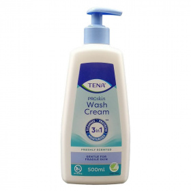A vizes-szappanos mosdatást kiváltó, kíméletes termék megvédi és hidratálja a sérülékeny, idős bőrt. Kényelmesen használható termék, amely nem igényel vizes leöblítést. A TENA ProSkin mosdatókrém az inkontinenciatermékek cseréje során, illetve a teljes testfelület megtisztítására használható.