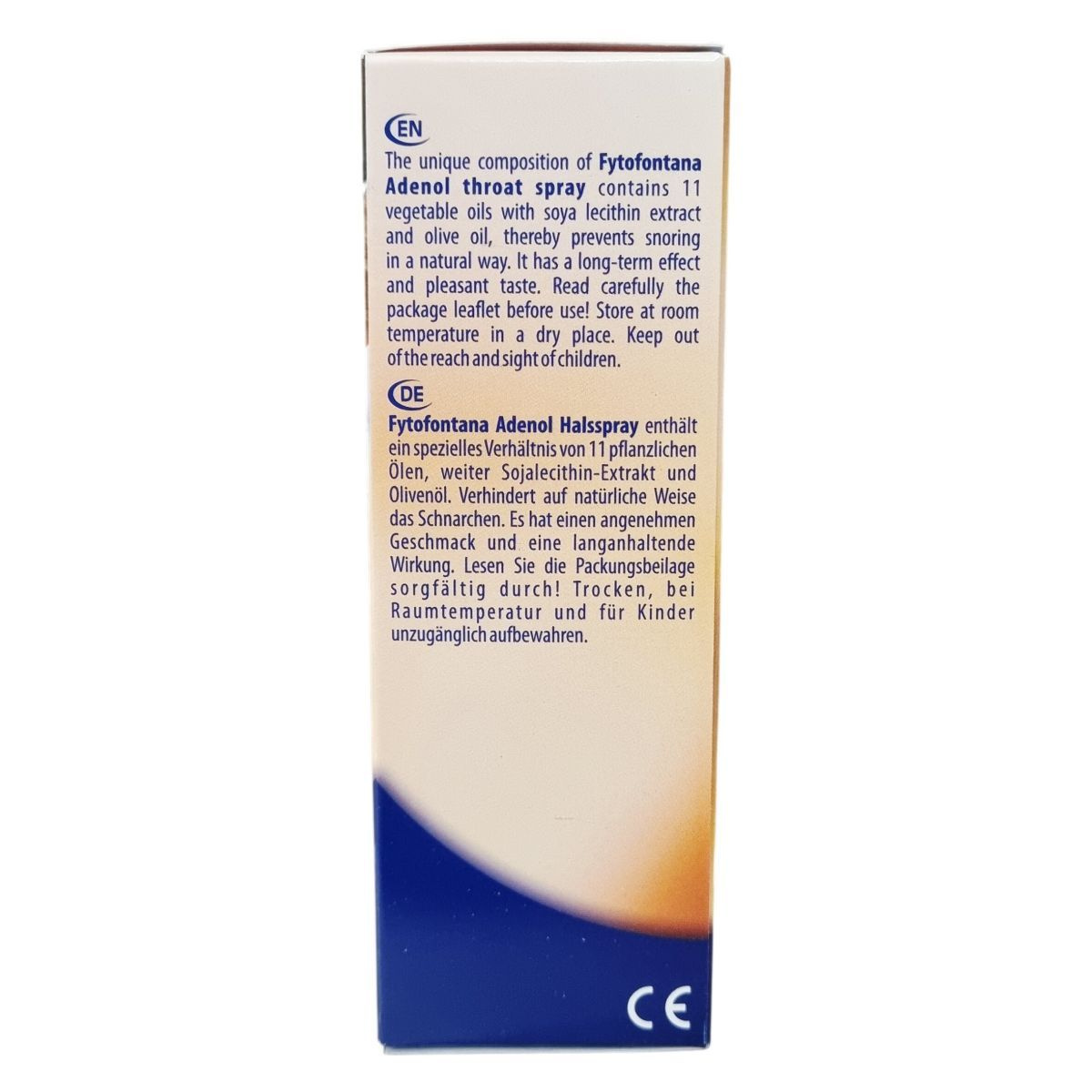 A Fytofontana Adenol torokspray egy egyedi receptúra alapján készült termék, amely 11 növényi olajat, szójalecitin-kivonatot és olívaolajat tartalmaz. Ezek segítségével természetes módon támogatja a horkolás csökkentését. A termék hosszú távú hatást fejthet ki és kellemes ízű, így használata kényelmes. Használat előtt feltétlenül olvassa el a részletes használati útmutatót, és a sprayt tárolja szobahőmérsékleten, száraz helyen, gyermekek elől biztonságosan elzárva. A termék az Európai Unió területén készül.