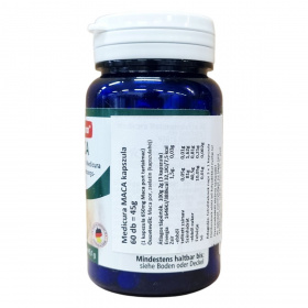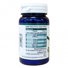 A termék 60 darab kapszulát tartalmaz, melyek össztömege 45,1 gramm. Egy kapszula 650 mg Maca port tartalmaz, amely természetes összetevőként szolgál. Az energia- és tápértékadatok alapján 3 kapszula 32,1 kJ/7,5 kcal energiát biztosít, a zsír bevitel csekély, telített zsírsav tartalma minimális. A készítményt ajánlott főétkezések előtt, bő folyadékkal bevenni. A kapszula héja zselatin alapú. Tárolását 25 °C alatt, száraz, hűvös helyen kell biztosítani. A termék a vegán étrendet követők számára is alkalmas. Gyermekektől el kell zárni, és az ajánlott napi adagot nem szabad túllépni.