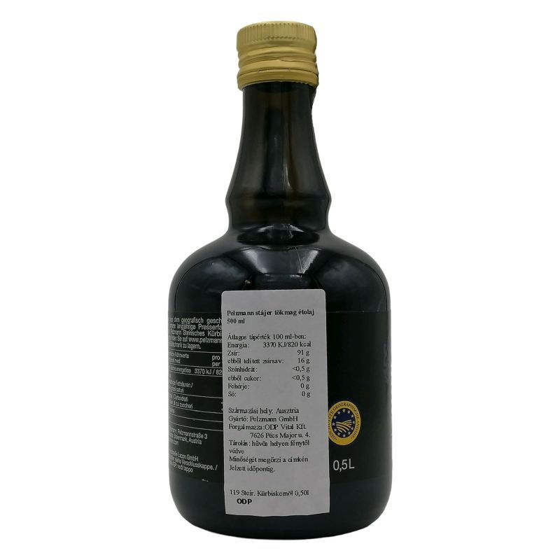 Kb. 46% zsírt tartalmaz, amelynek 57%-át többszörösen telítetlen zsírsavak teszik ki. A színe sötétbarnás vagy zöldes, íze kifejezetten aromás. A népi gyógyászatban húgyhólyag- és prosztatapanaszok esetén alkalmazzák. Férfiak, akik szeretnének megelőzni időskori bajokat, kezdjék el időben a tökmagolaj fogyasztását! Hasonló módon a hölgyek is sokat tehetnek a húgyhólyagjuk érdekében, megelőzve sok kellemetlenséget. A tökmagolaj kifejezetten finom, selymes, zamatos, Egyes tanulmányok szerint a tökmagolajban található E-vitaminnak a nemi vágy megszületésében is szerepe van, ezért akik a zöld olajat fogyasztják, azoknak a szexuális életük pezsgőbbé, olajozottabbá válik, ráadásul természetes módszerekkel. 100g tartalmaz: Energia: 3700kJ/900kcal Fehérje: 0g Szénhidrát: 0g Zsír: 99g Ebből telített zsír: 17g Egyszeresen telítetlen zsír: 35g Többszörösen telítetlen zsír: 47g Koleszterin: 0g E-vitamin: 60mg.