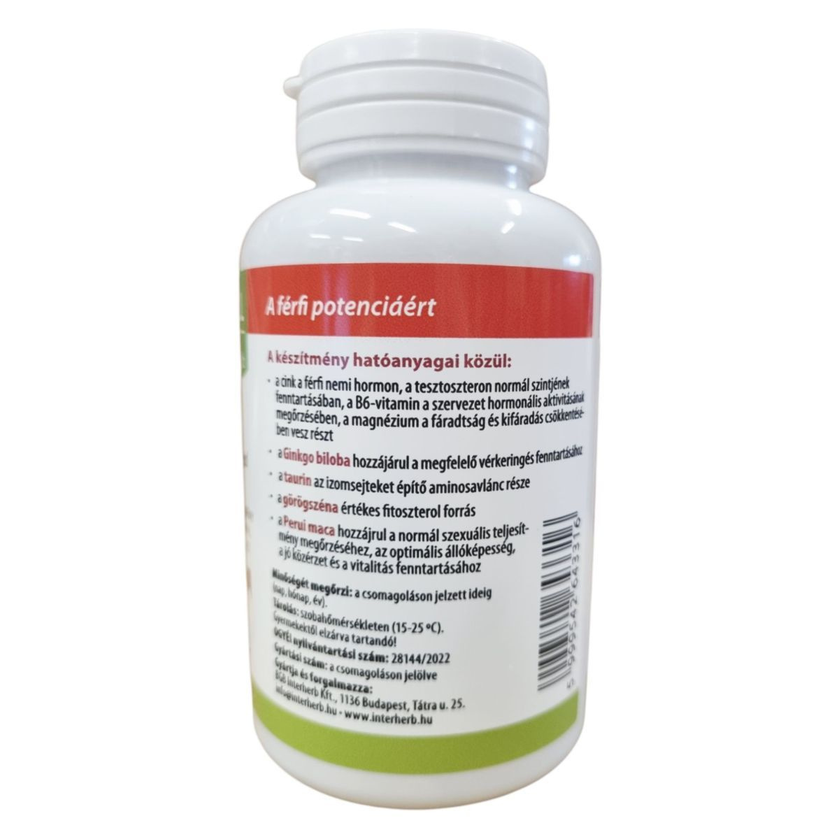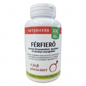 Az INTERHERB Férfierő étrend-kiegészítő tabletta kifejezetten férfiak számára készült, hogy támogassa az optimális állóképességet és a normál szexuális teljesítményt. A termék növényi kivonatokat, például görögszénát és Perui macát tartalmaz, amelyek hozzájárulhatnak a vitalitás fenntartásához. A cink és a B6-vitamin segíthet a hormonális aktivitás megőrzésében, míg a magnézium csökkentheti a fáradtságot. A Ginkgo biloba kivonat hozzájárulhat a megfelelő vérkeringés fenntartásához, a taurin pedig az izomszövetet építő aminosavlánc része. A termék használata előtt fontos figyelembe venni a figyelmeztetéseket, különösen véralvadásgátló szerek szedése esetén.