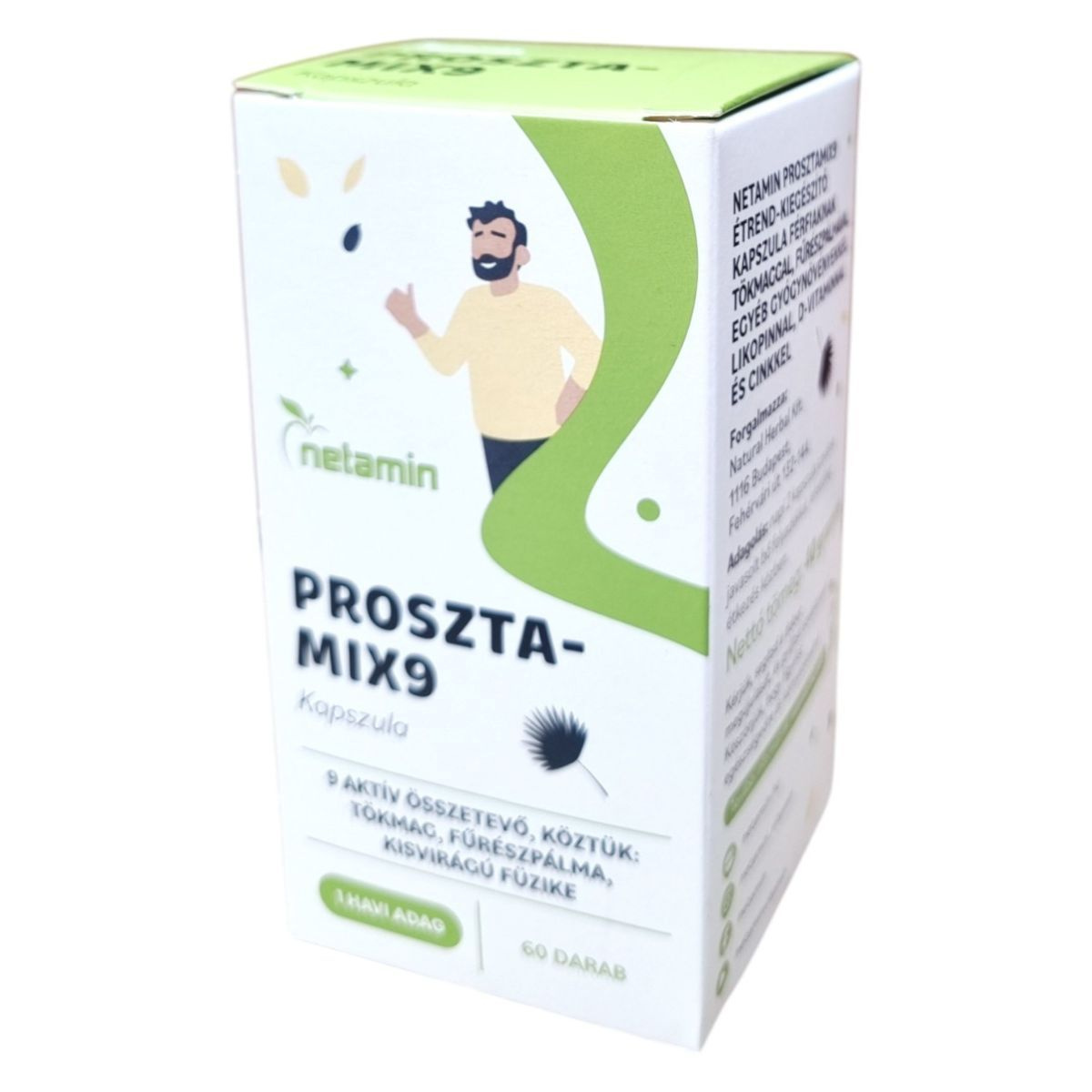A Netamin Prosztamix9 kapszula 9 aktív összetevőt tartalmazhat, mint például tökmag, fűrészpálma és kisvirágú füzike, amelyek hozzájárulhatnak a férfiak egészségének támogatásához.