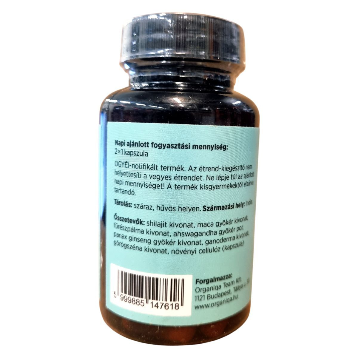Az Organiqa Férfi Egészség étrend-kiegészítő egy speciálisan férfiak számára kifejlesztett termék, amely különböző gyógynövények kivonatát tartalmazza. A termék vegán kapszulában érhető el, és hozzájárulhat a férfiak egészségének támogatásához. A termék India származási helyű, és az OGYÉI által notifikált. A kapszulák shilajit, maca gyökér, fűrészpálma, ashwagandha, panax ginseng, ganoderma és görögszéna kivonatot tartalmaznak, amelyek különböző egészségügyi előnyökkel járhatnak. A termék forgalmazója az Organiqa Team Kft., és a termék megvásárolható a cég weboldalán keresztül.