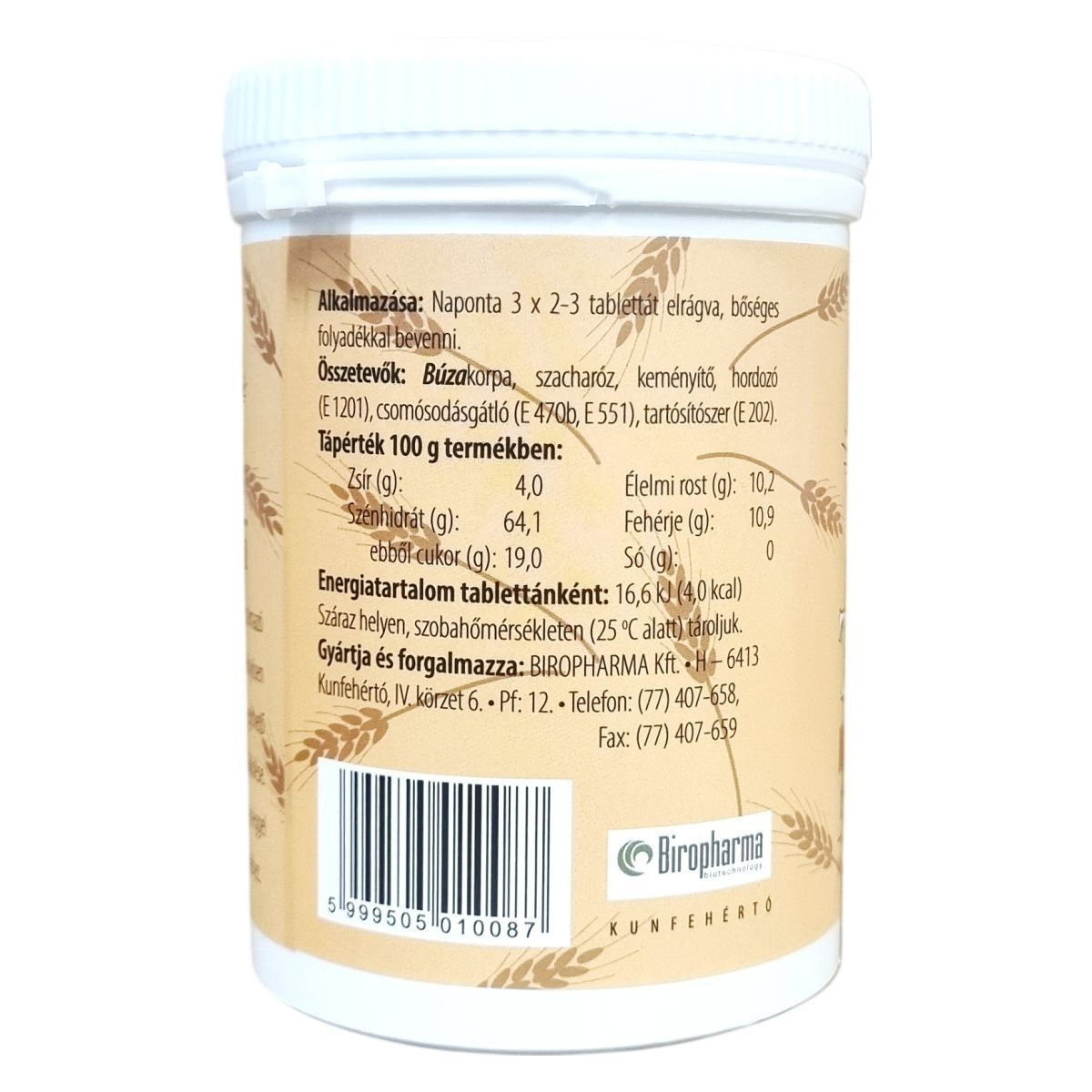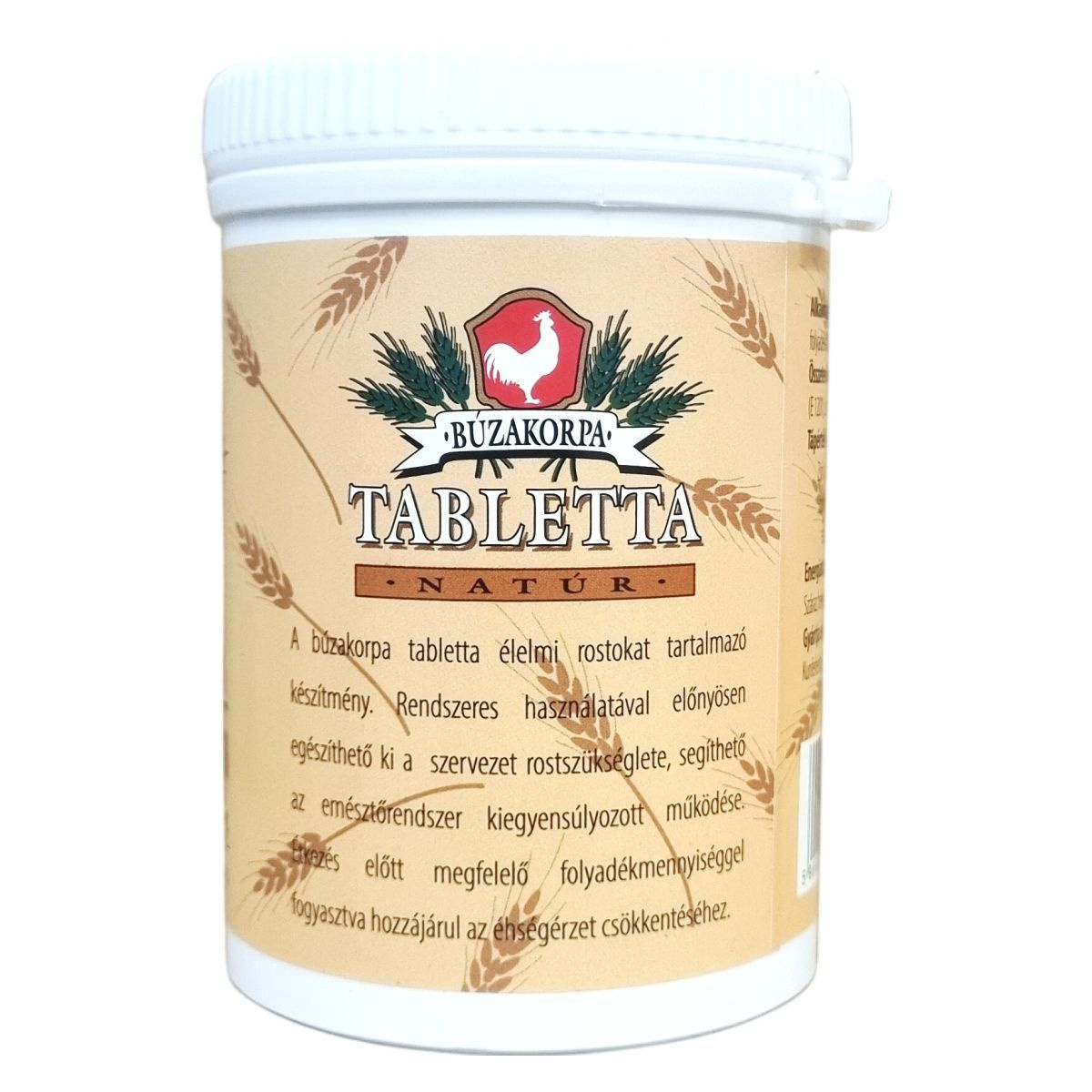 A búzakorpa tabletta az élelmi rostok rendszeres bevitelére készült táplálék-kiegészítő, amelynek alkalmazása elősegítheti a szervezet rostszükségletének kielégítését és támogathatja az emésztőrendszer kiegyensúlyozott működését. A termék fogyasztása során ajánlott bőséges folyadékot inni, amely előnyösen befolyásolhatja az éhségérzet csökkenését. A tabletták 150 darabos kiszerelésben, 172,5 gramm nettó tömegben érhetők el.